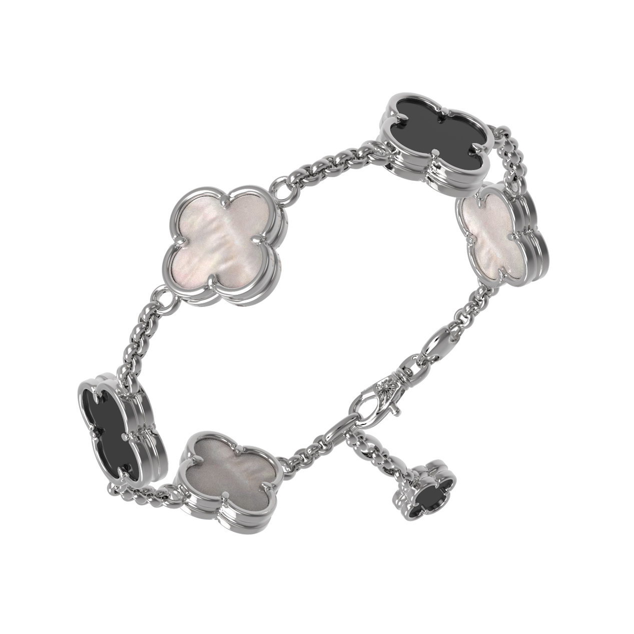 Браслет из белого золота c ониксом и перламутром