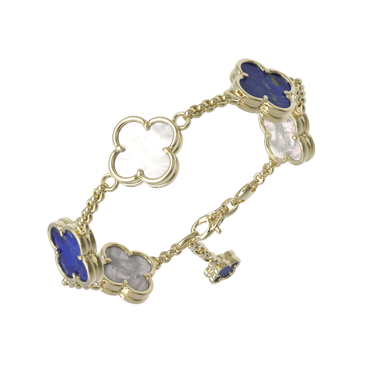 Браслет из лимонного золота c лазуритом и перламутром
