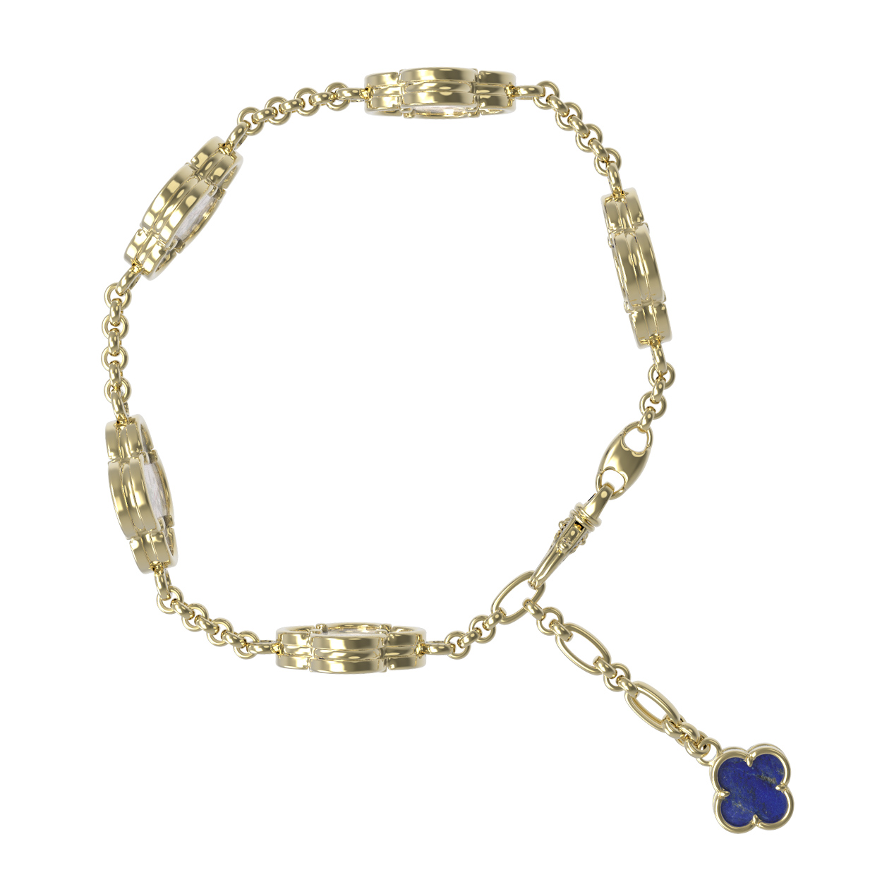 Браслет из лимонного золота c лазуритом и перламутром