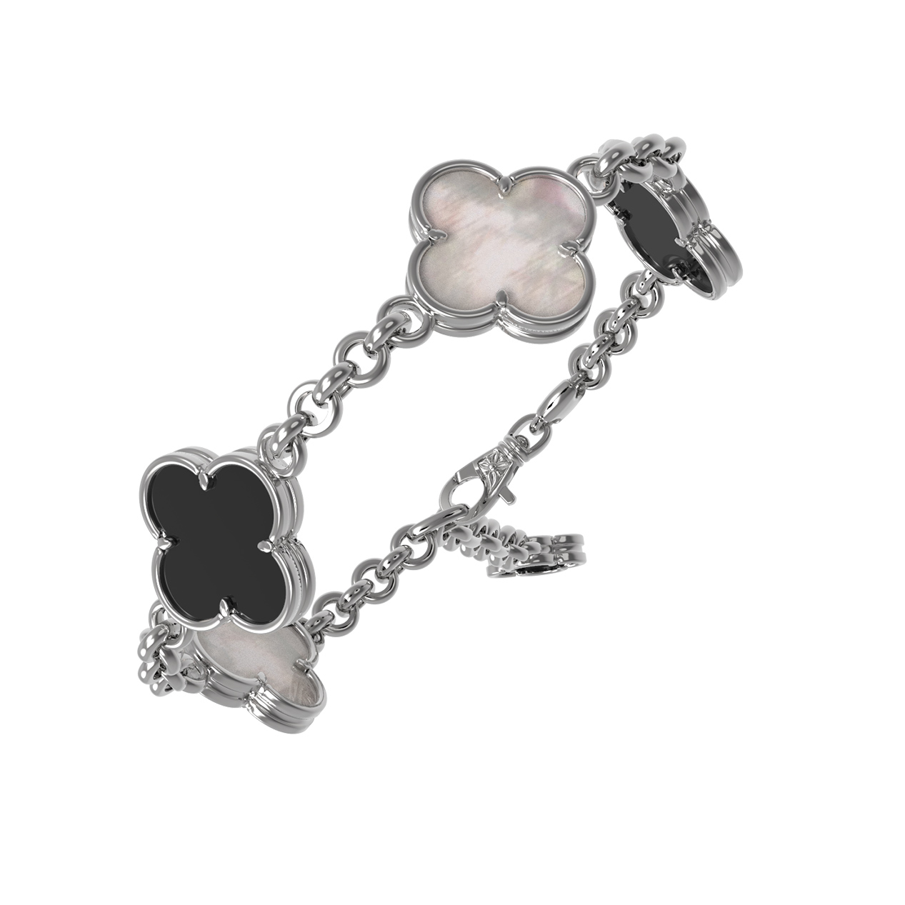 Браслет из белого золота c ониксом и перламутром