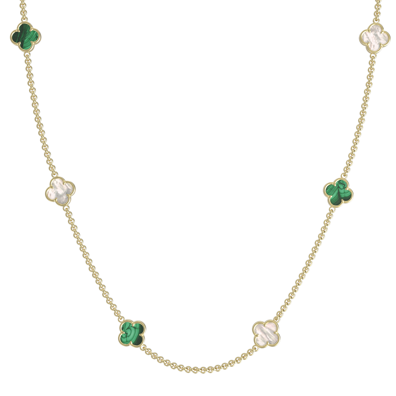 Колье из лимонного золота c малахитом и перламутром