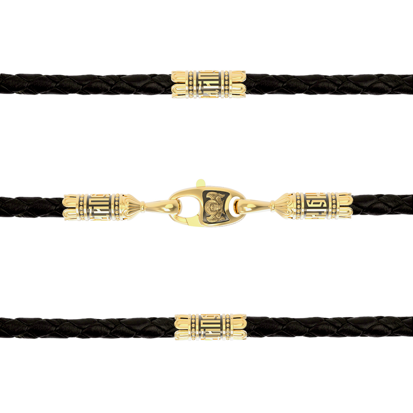Шнурок кожаный из лимонного золота c кожаным шнурком
