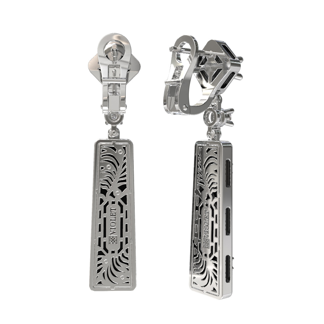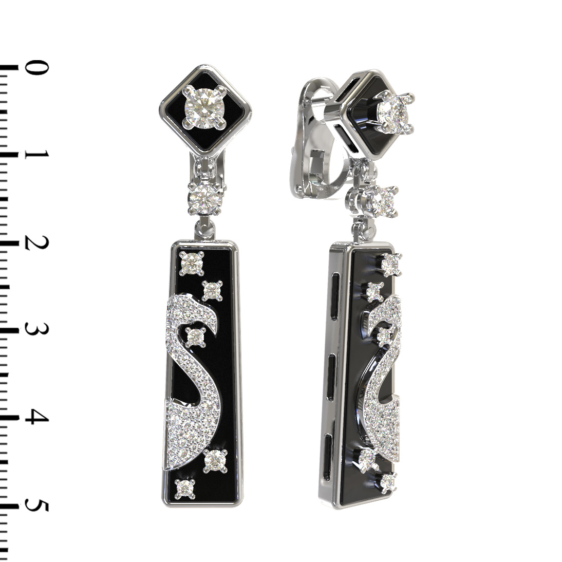 Серьги из белого золота c бриллиантами и ониксом