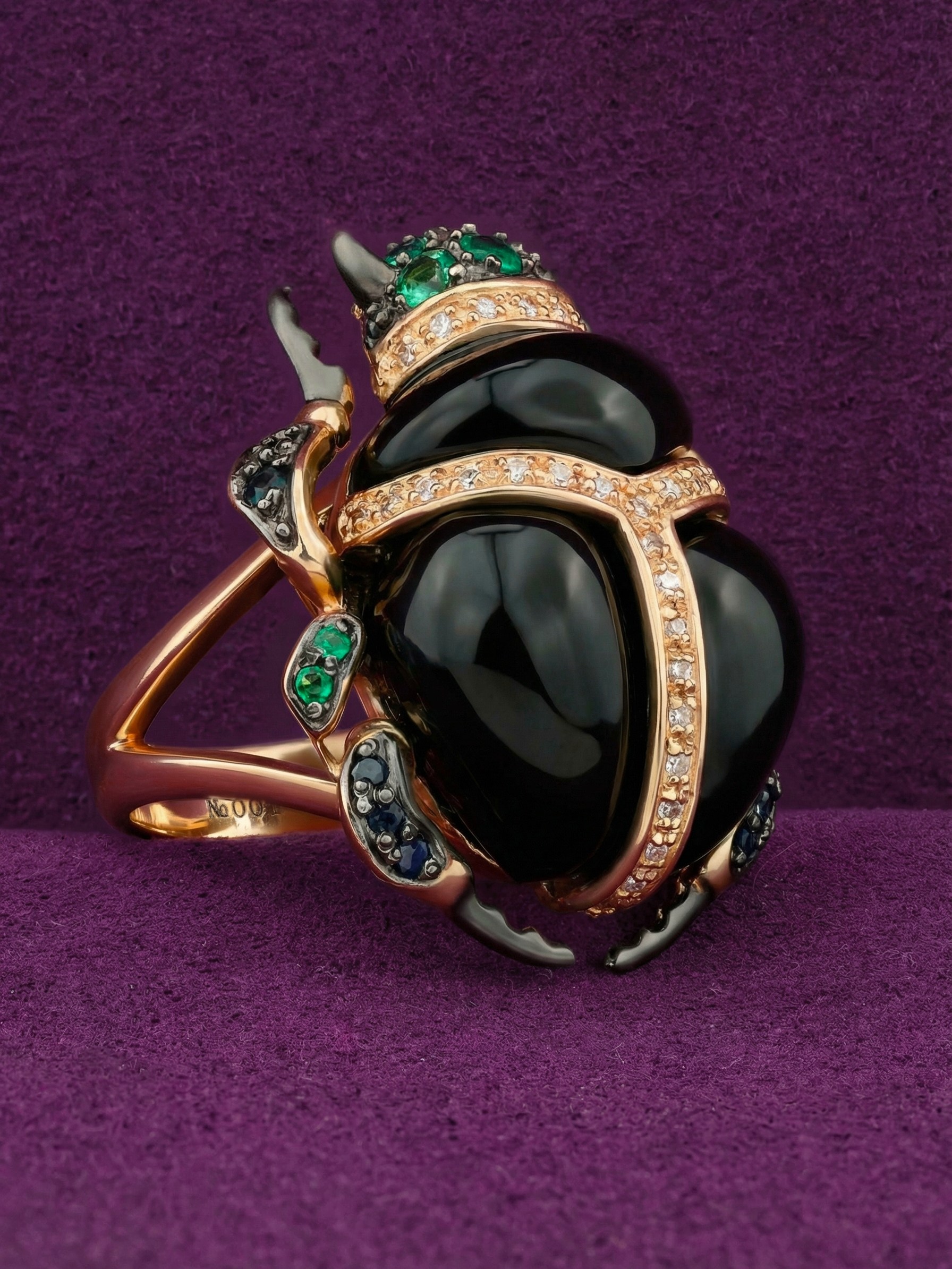 Кольцо из золота c бриллиантами, сапфиром, изумрудом и ониксом