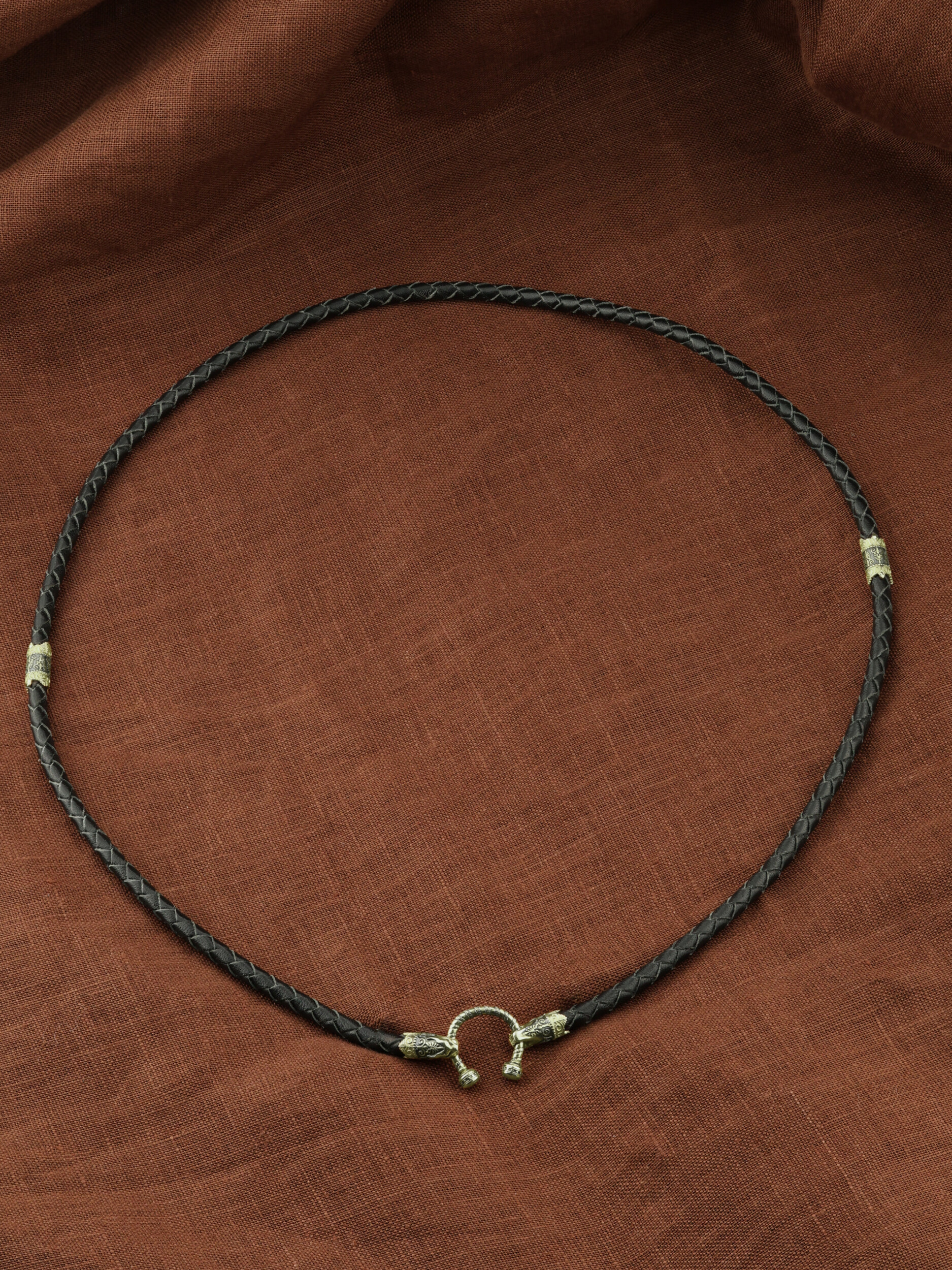 Шнурок кожаный из зелёного золота c кожаным шнурком