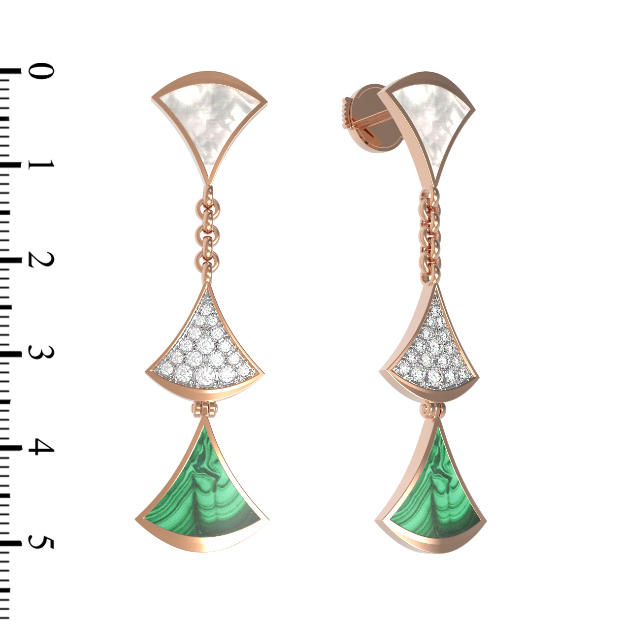 Серьги из золота c бриллиантами, малахитом и перламутром