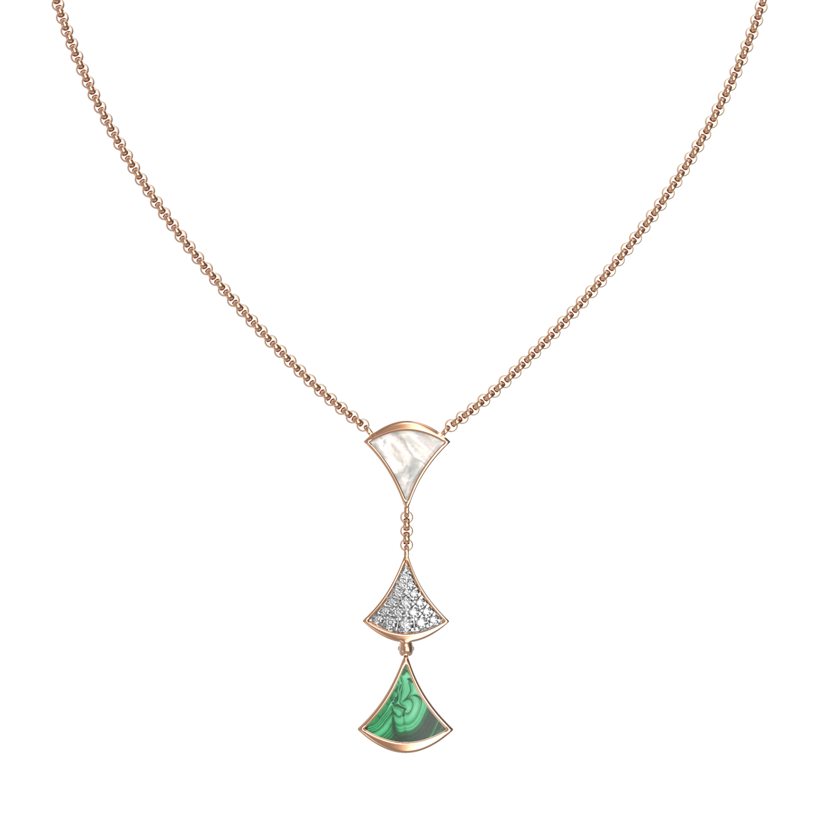 Колье из золота c бриллиантами, малахитом и перламутром