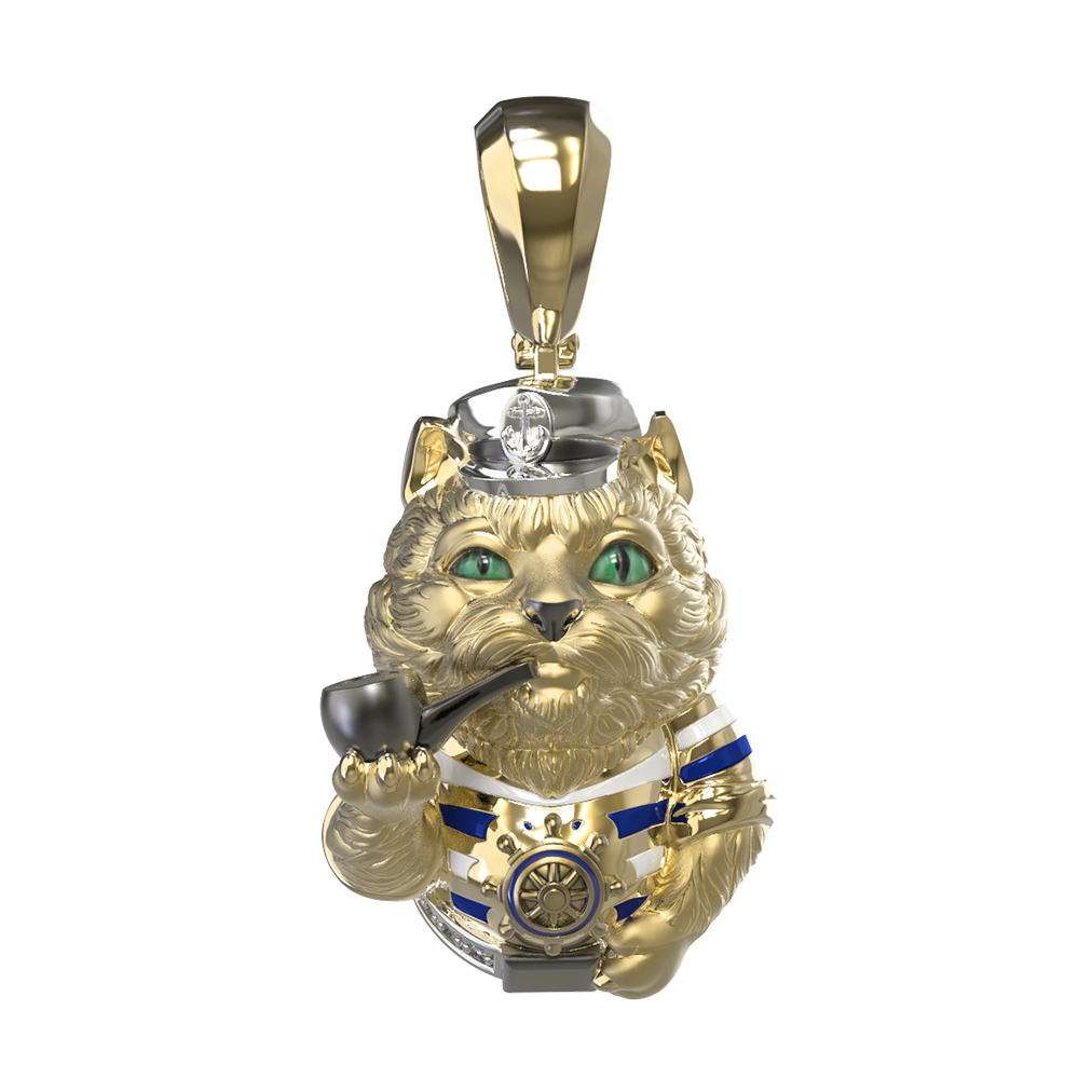 Подвеска из лимонного золота c эмаль, бриллиантами и рубином