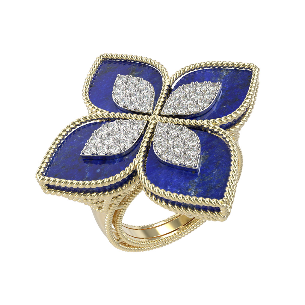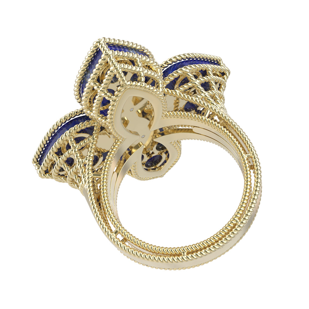 Кольцо из лимонного золота c бриллиантами и лазуритом