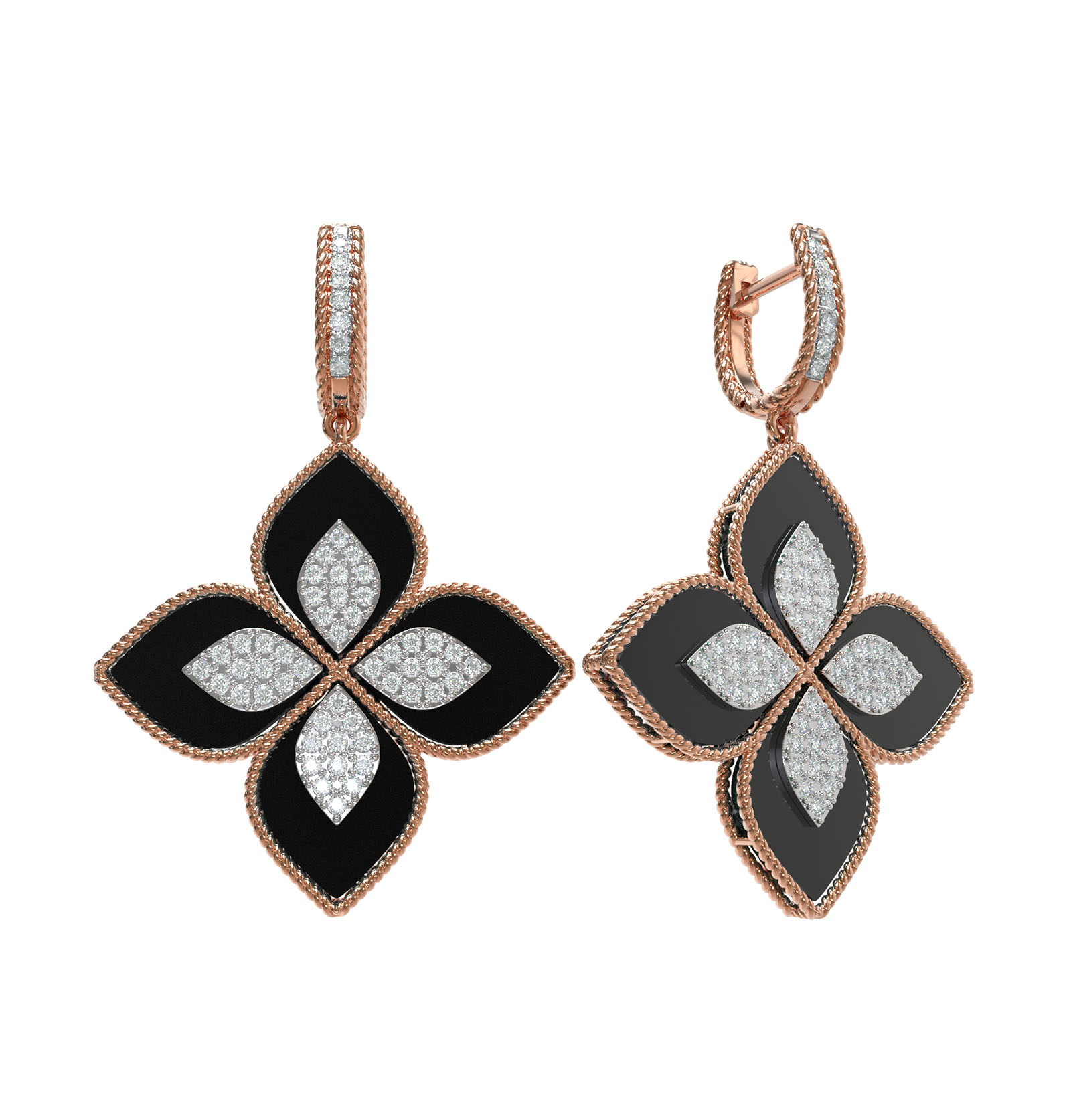 Серьги из золота c бриллиантами и ониксом