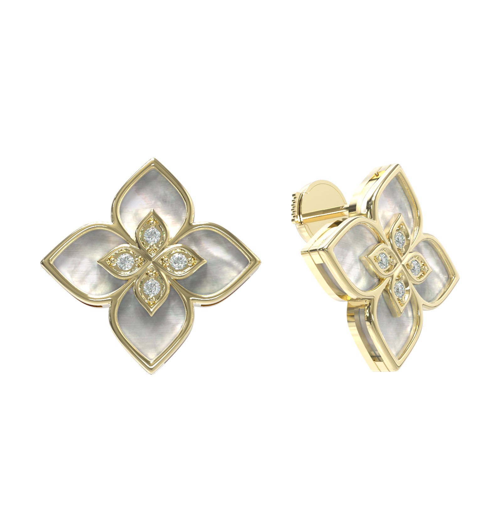 Серьги из лимонного золота c бриллиантами и перламутром