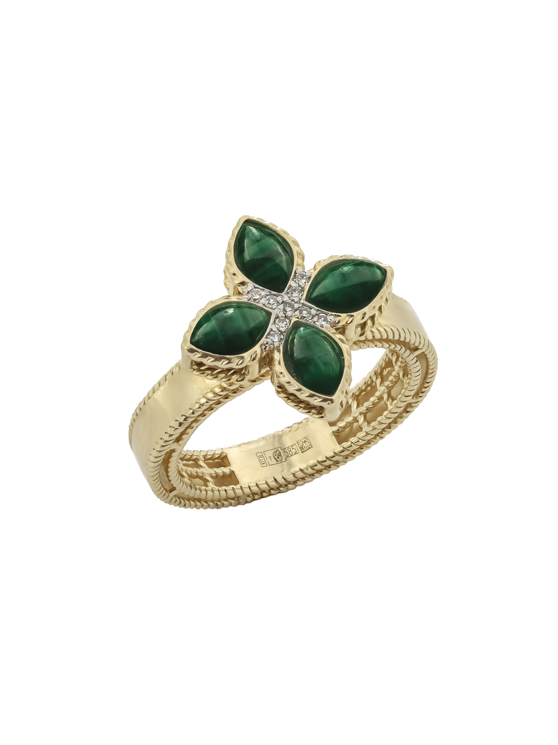 Кольцо из лимонного золота c бриллиантами и малахитом
