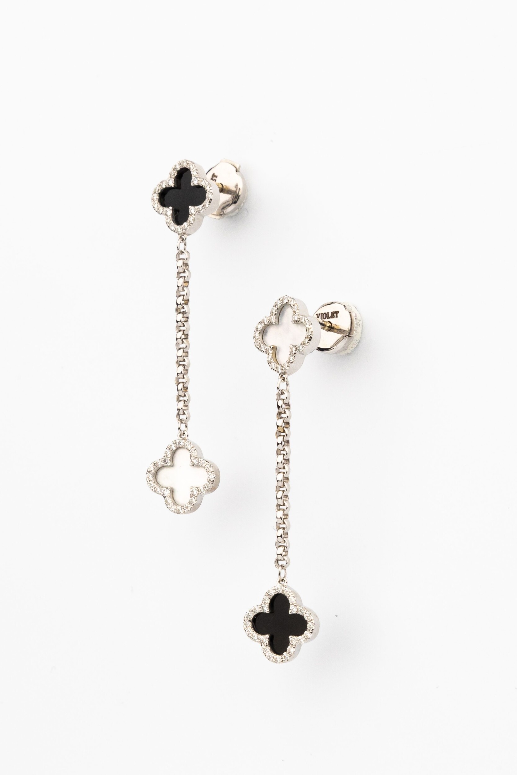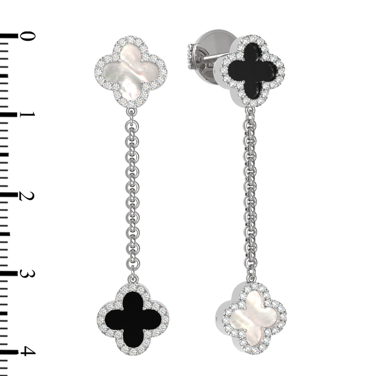 Серьги из белого золота c бриллиантами, ониксом и перламутром
