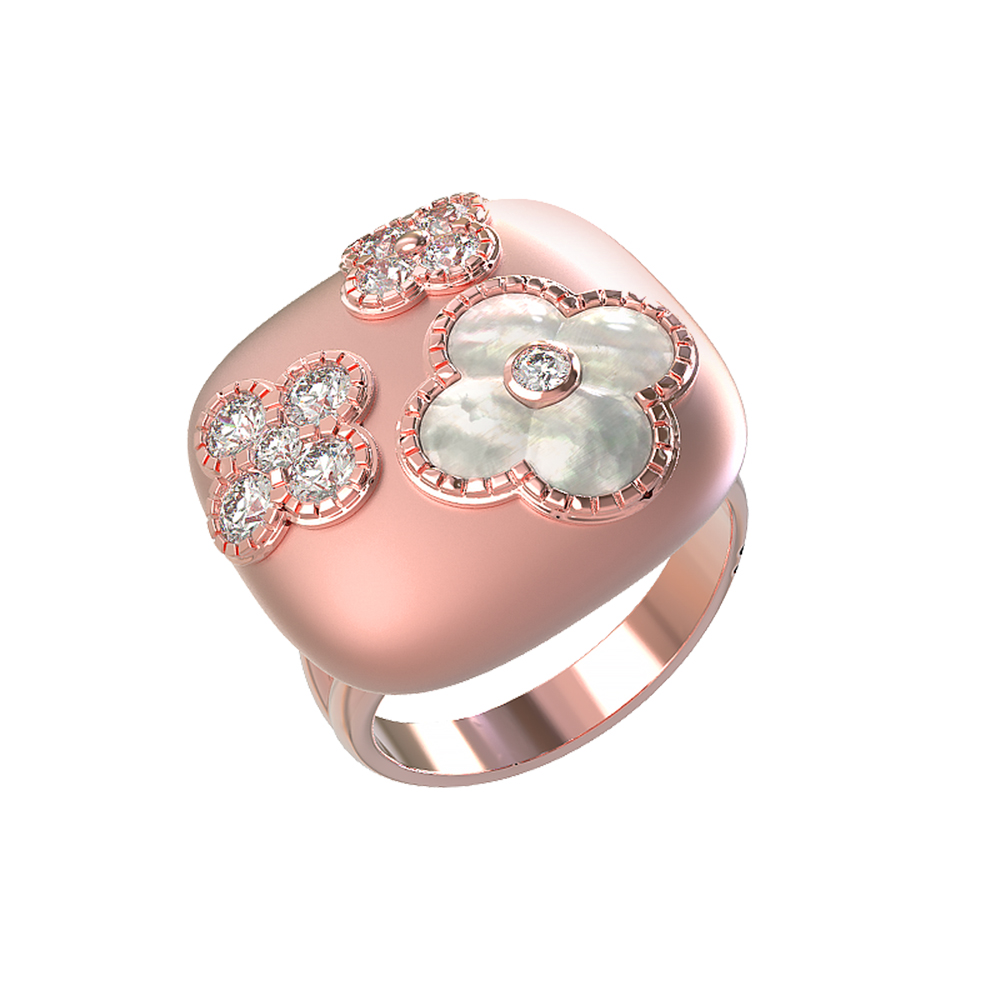 Кольцо из розового золота c бриллиантами и перламутром