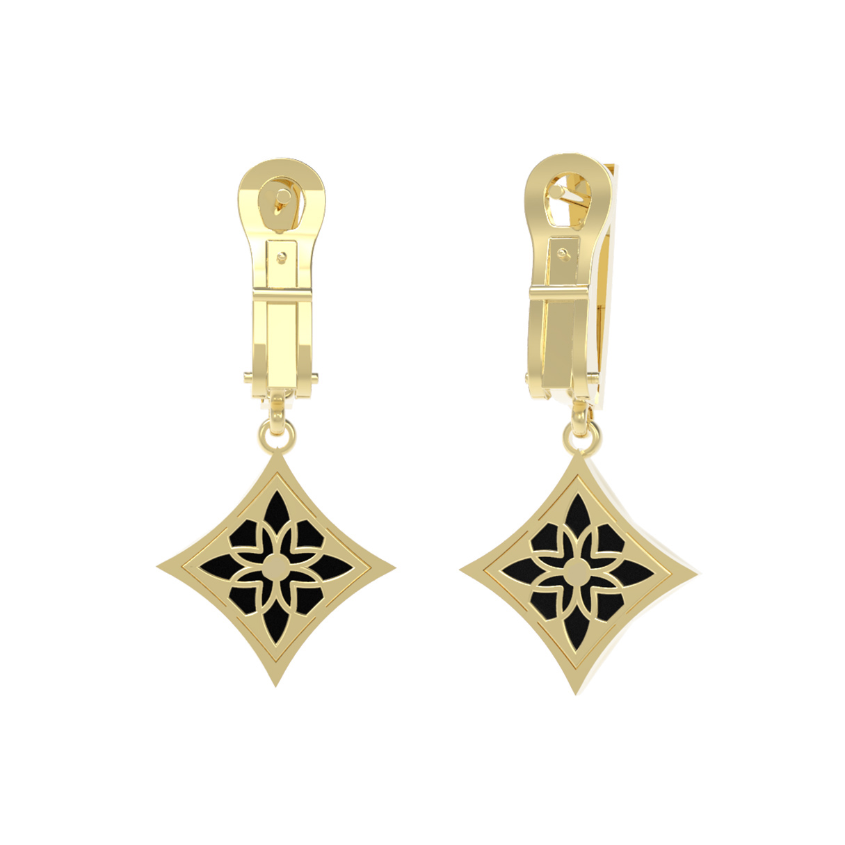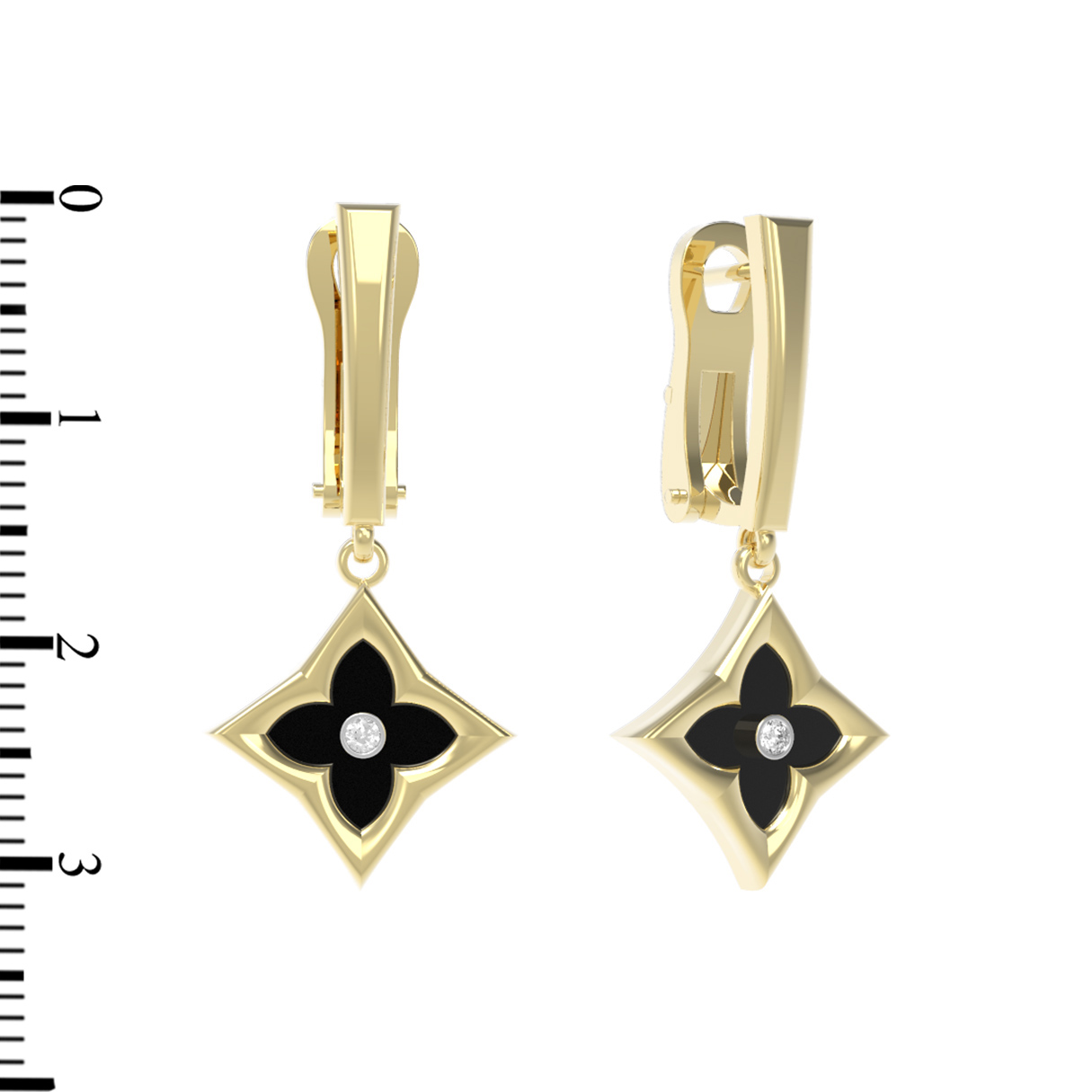 Серьги из лимонного золота c бриллиантами и ониксом