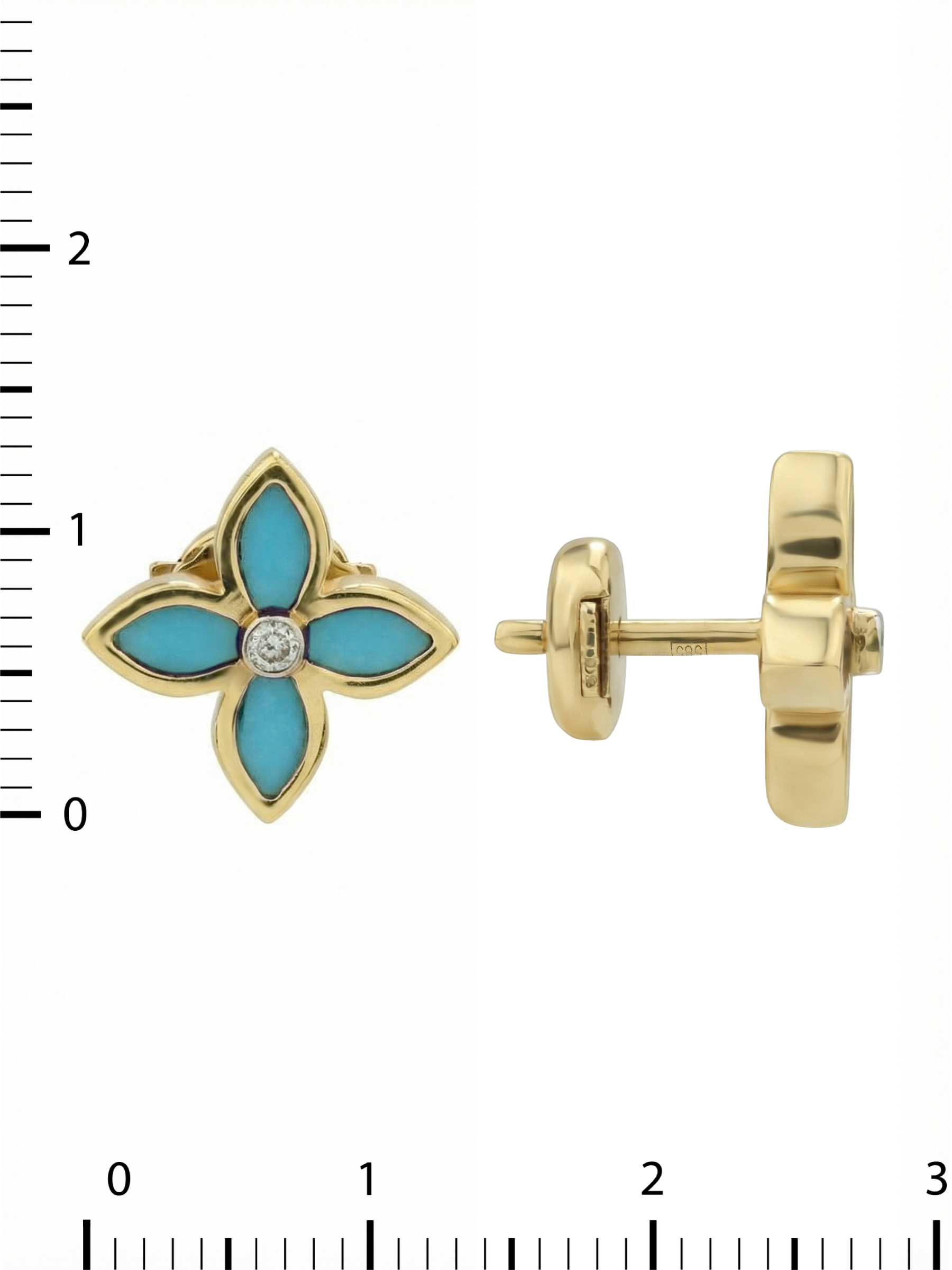 Серьги из лимонного золота c бриллиантами и бирюзой