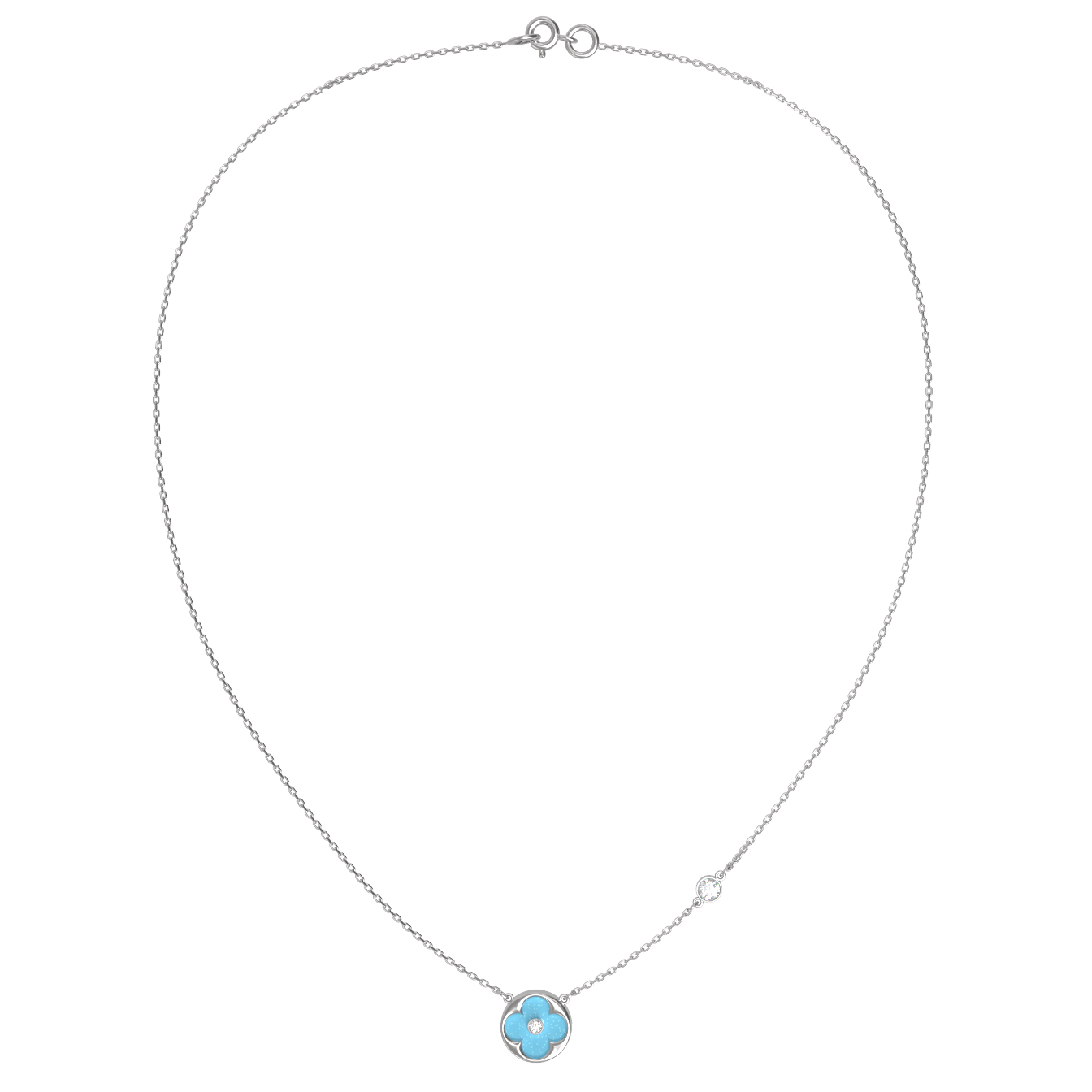 Колье из белого золота c бриллиантами и бирюзой