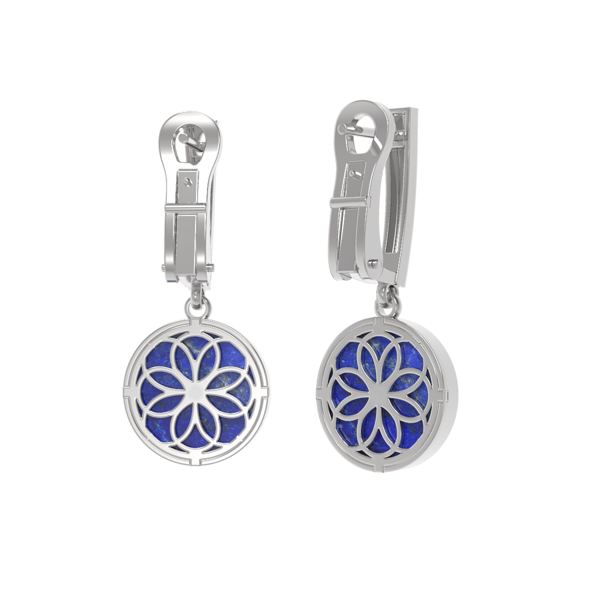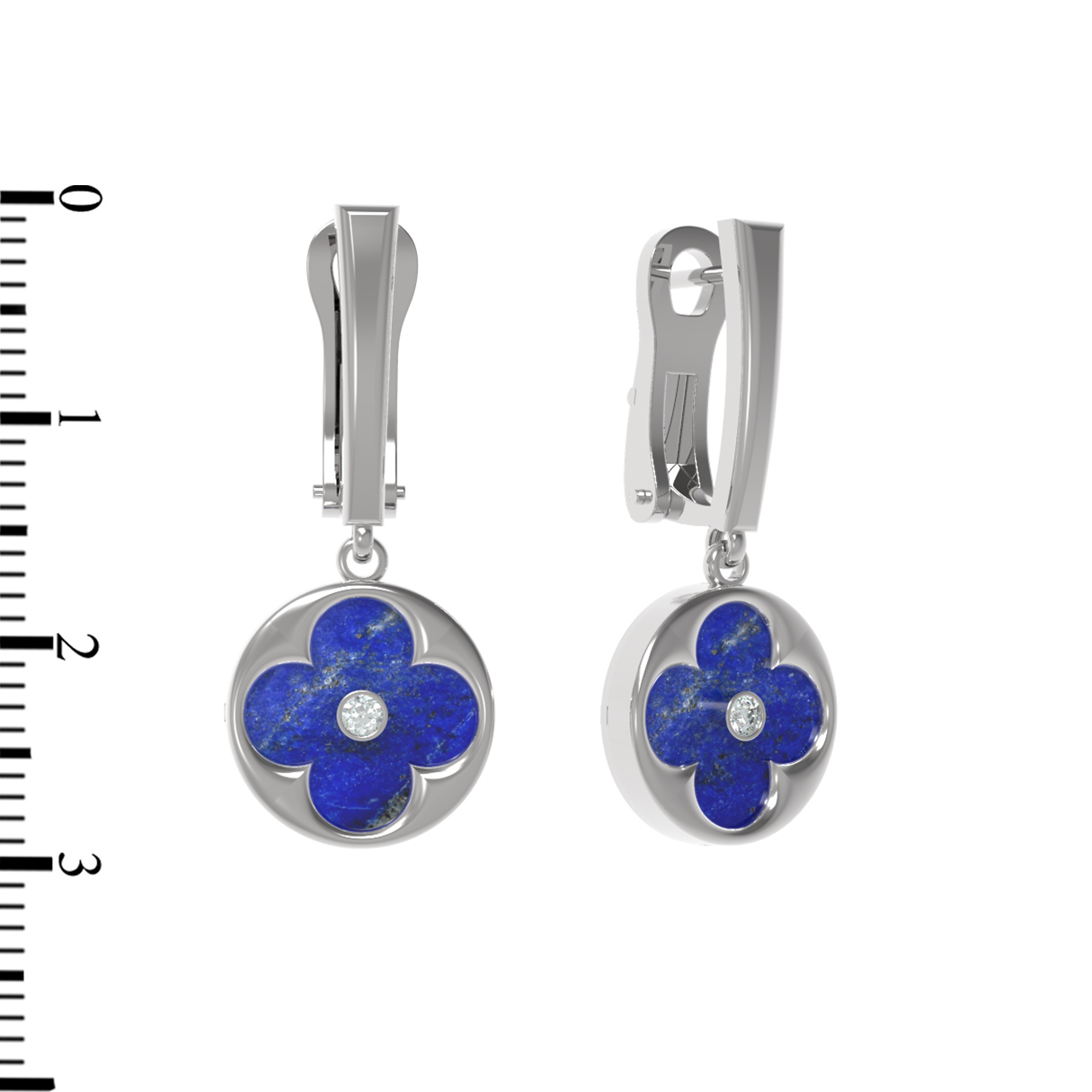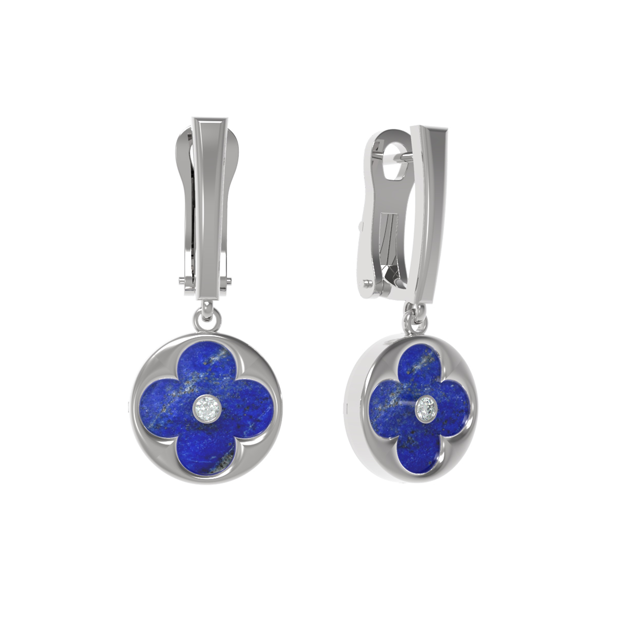 Серьги из белого золота c бриллиантами и лазуритом