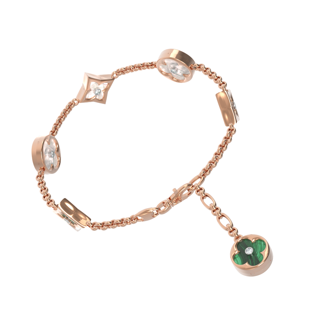 Браслет из золота c бриллиантами, малахитом и перламутром