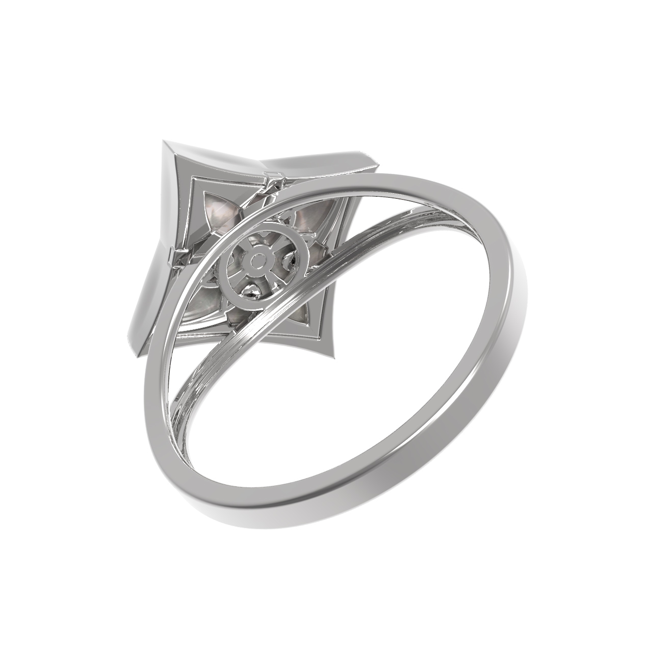 Кольцо из белого золота c бриллиантами и перламутром