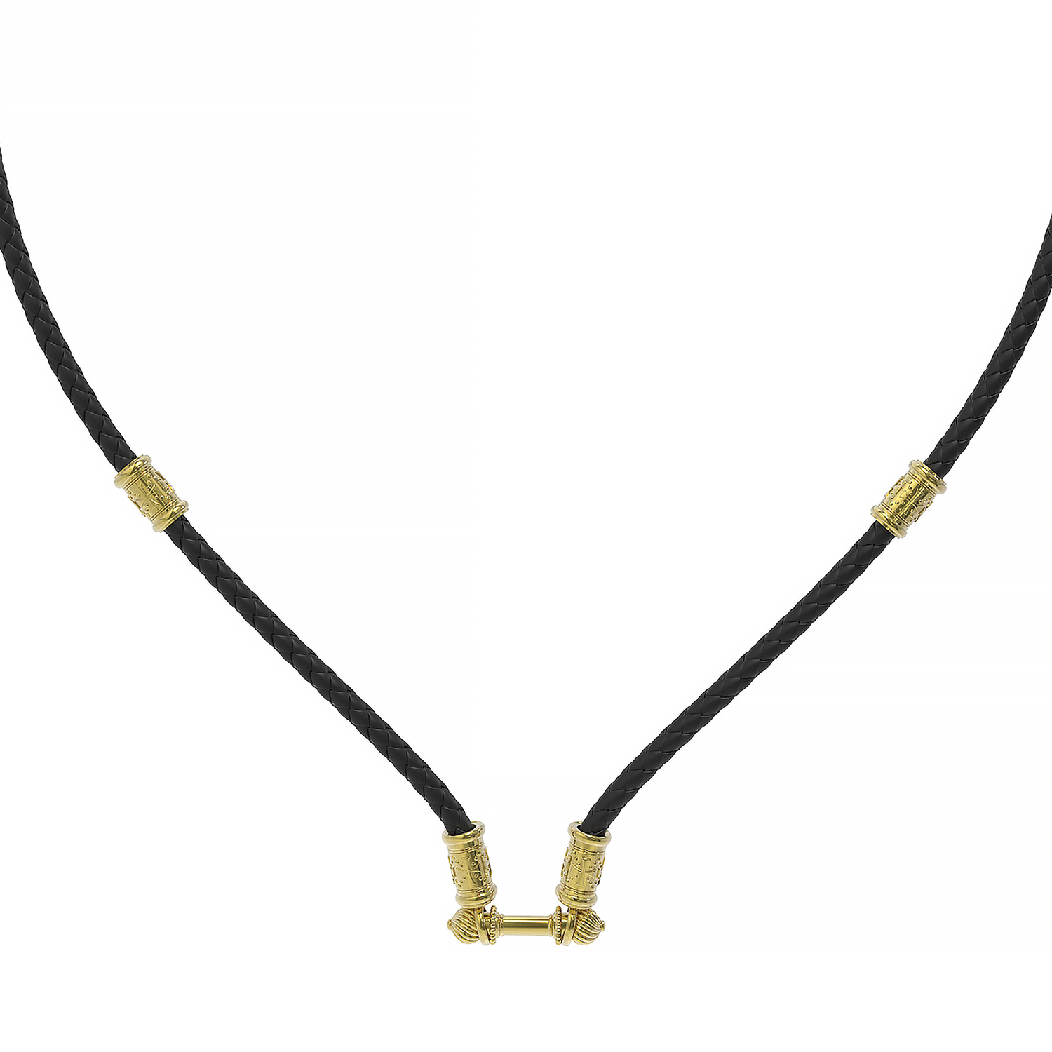 Шнурок кожаный из лимонного золота c кожаным шнурком