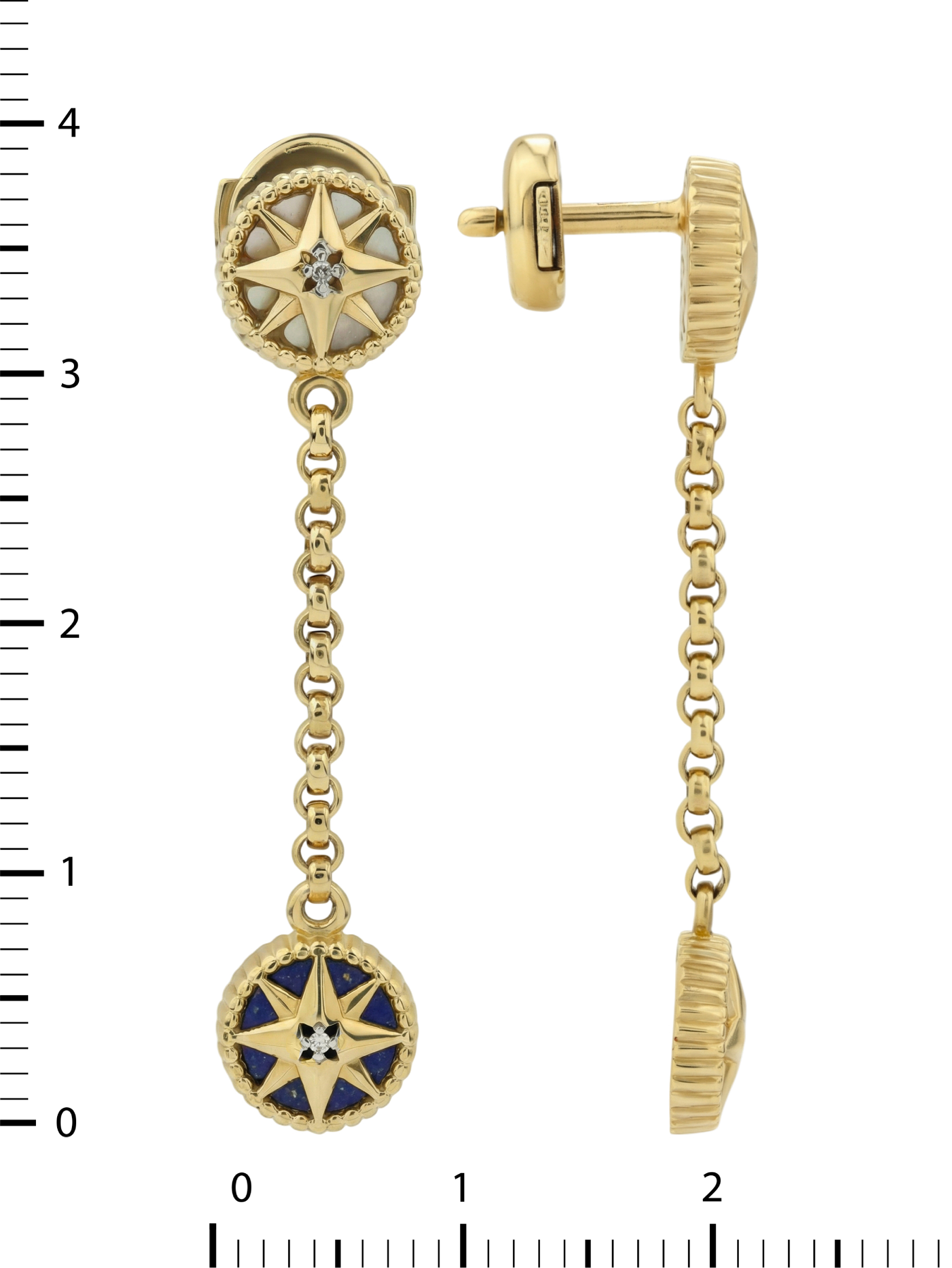 Серьги из лимонного золота c бриллиантами, лазуритом и перламутром