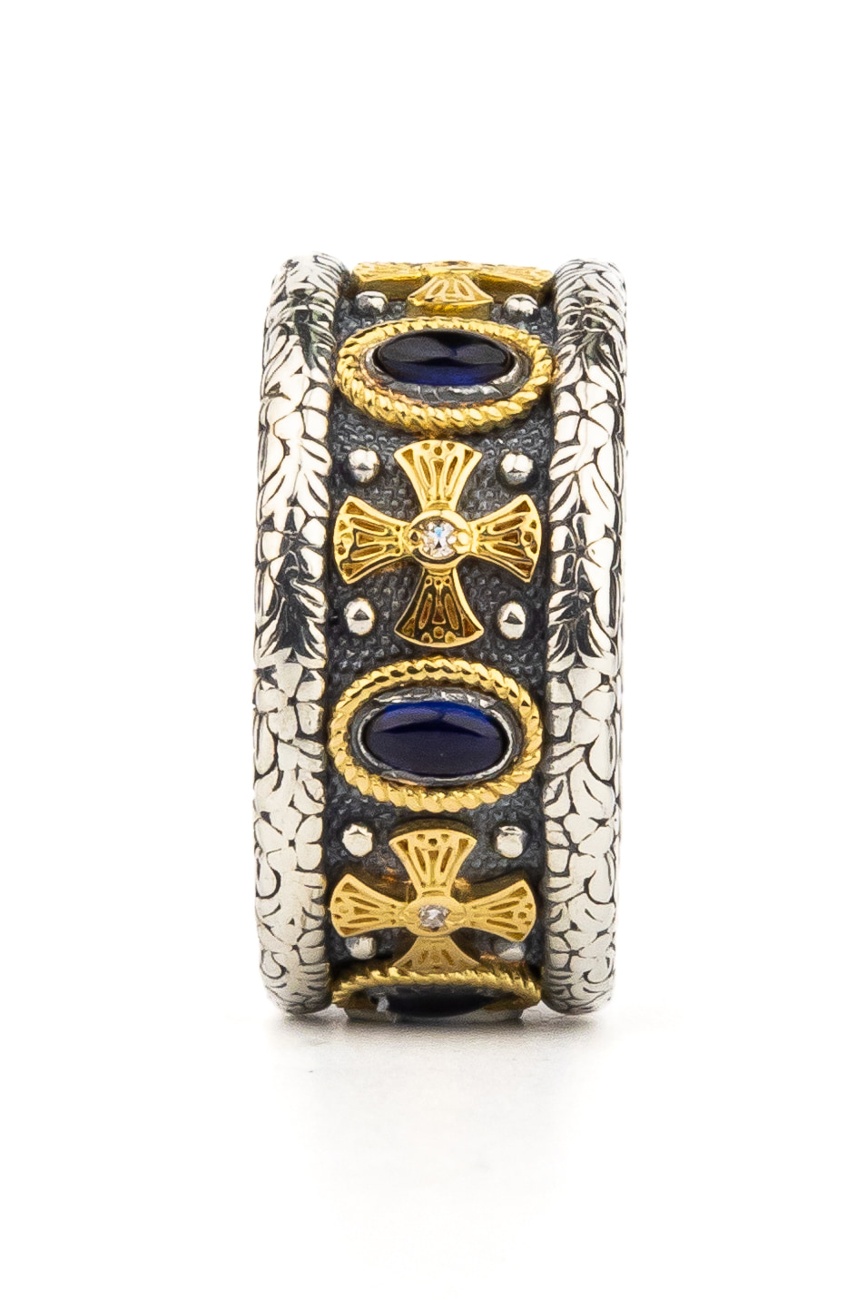 Кольцо из серебра и золота c бриллиантами, сапфиром и рубином