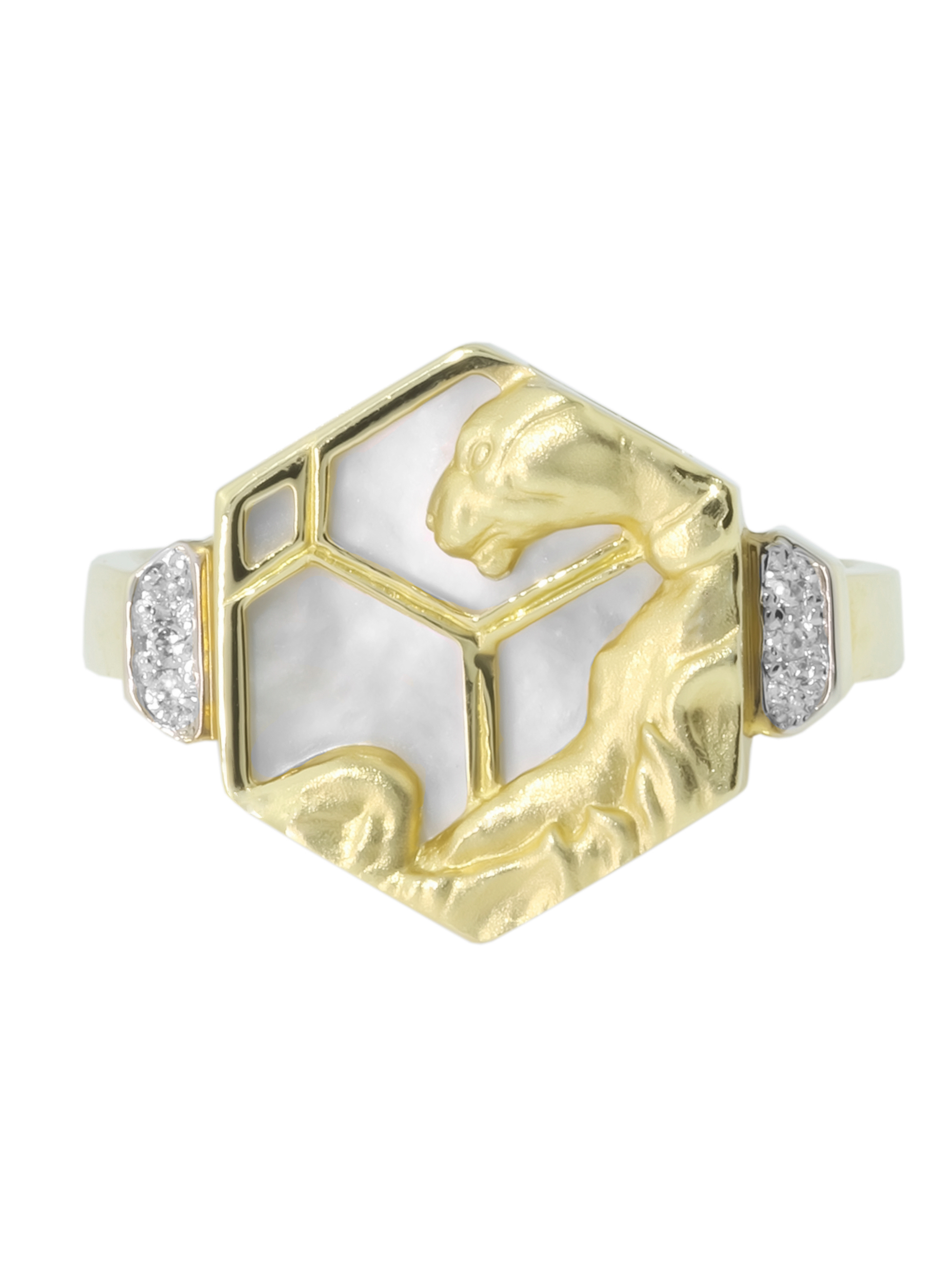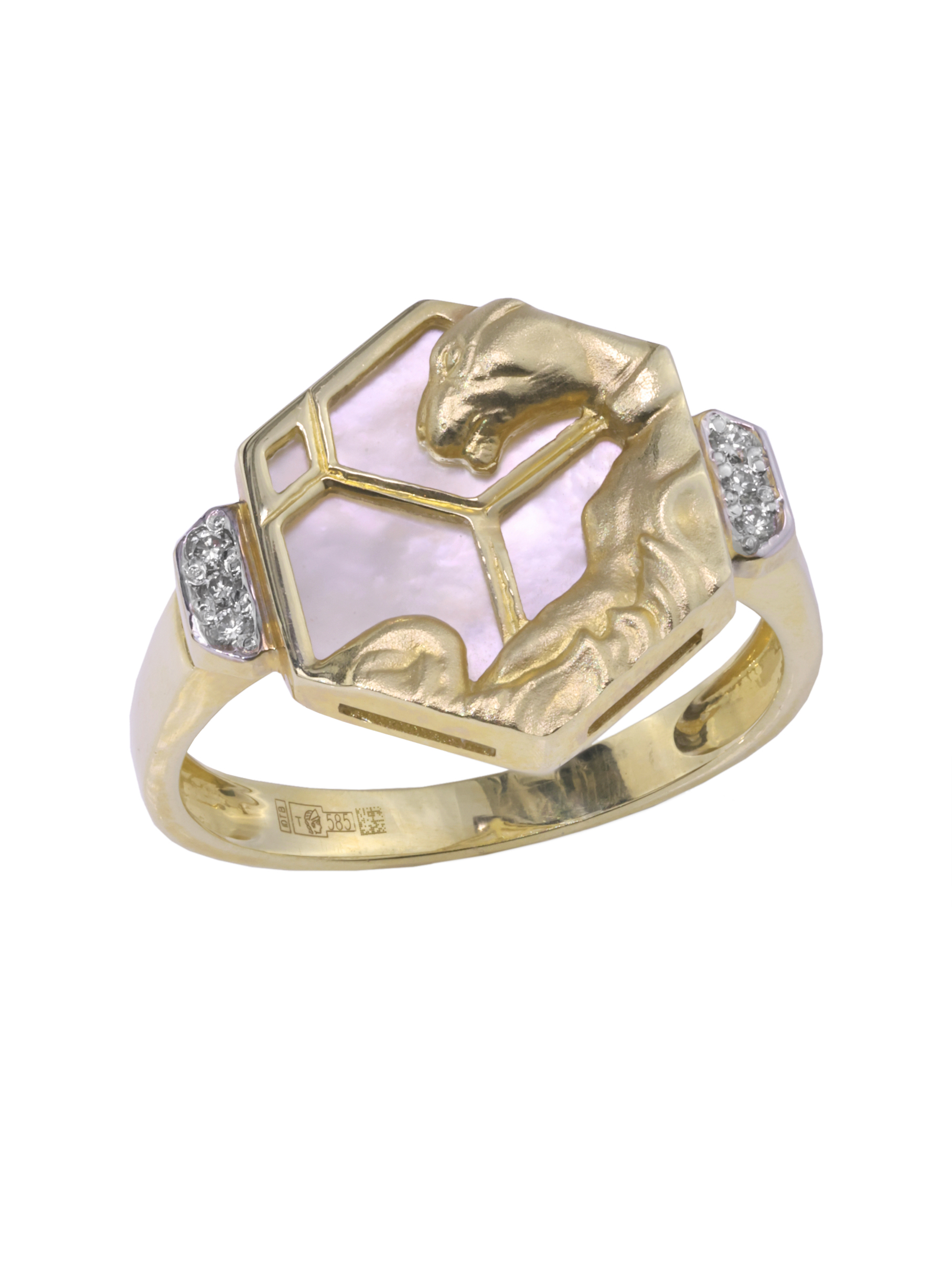 Кольцо из лимонного золота c бриллиантами и перламутром