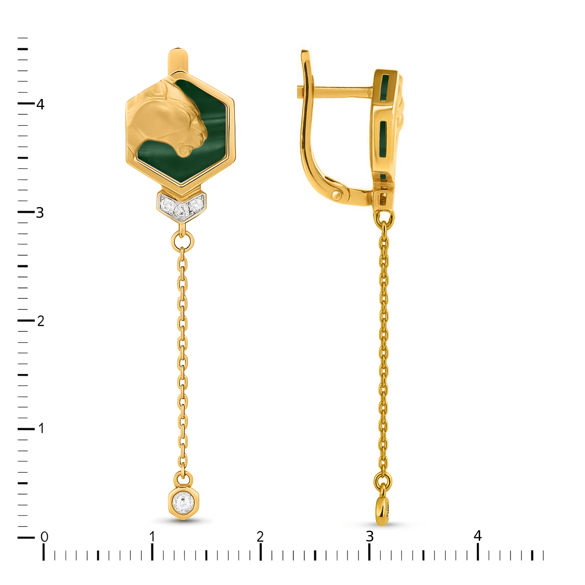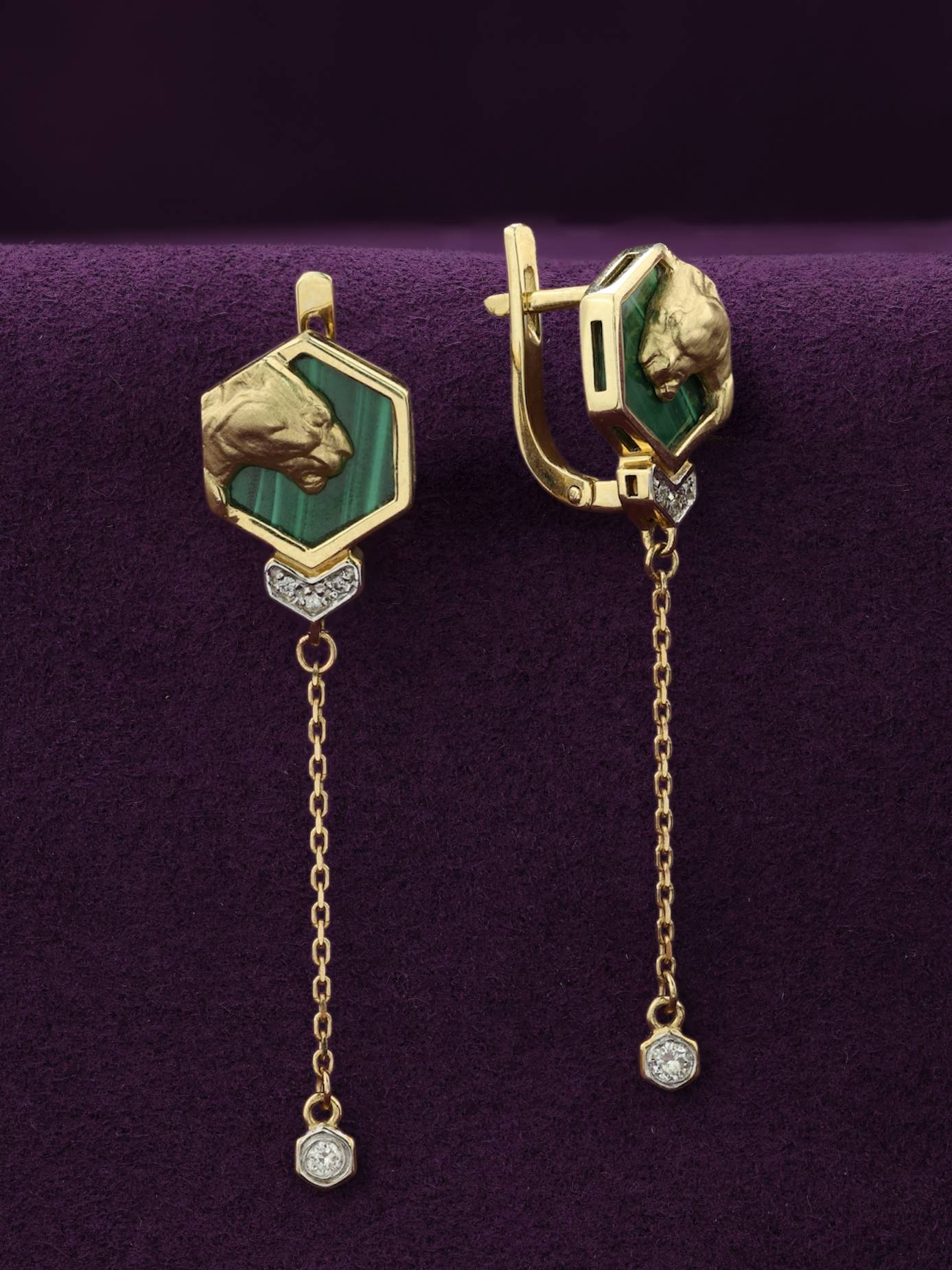 Серьги из лимонного золота c бриллиантами и малахитом