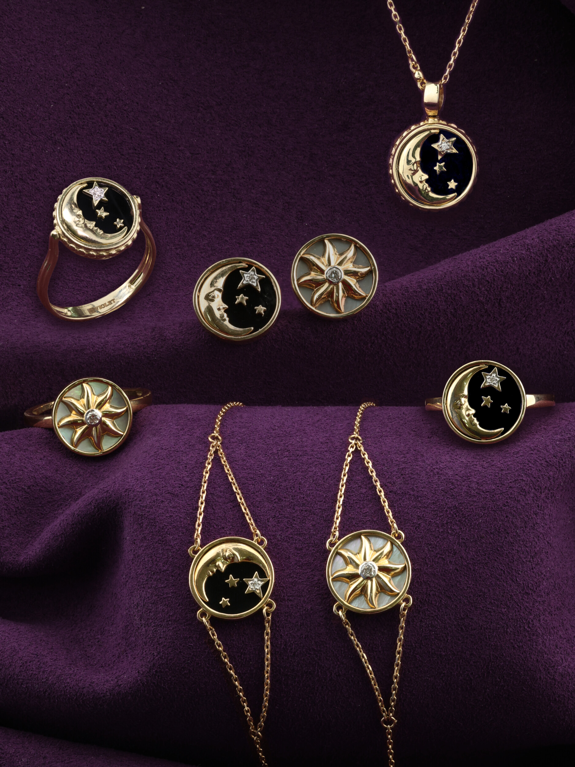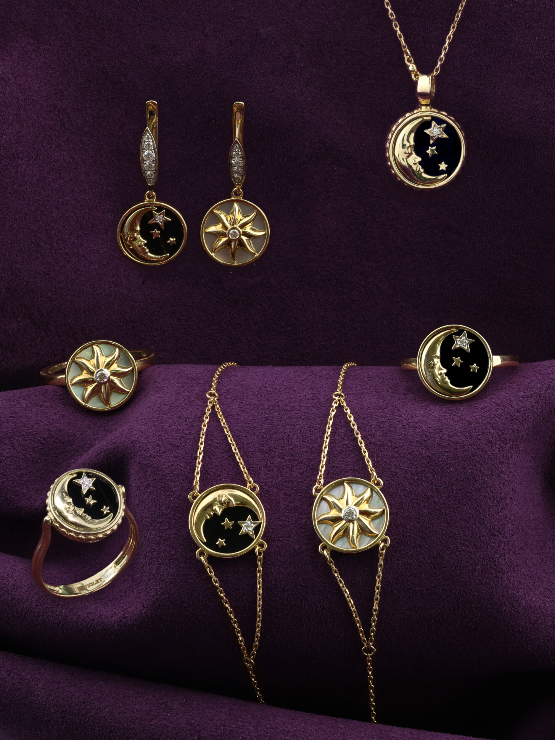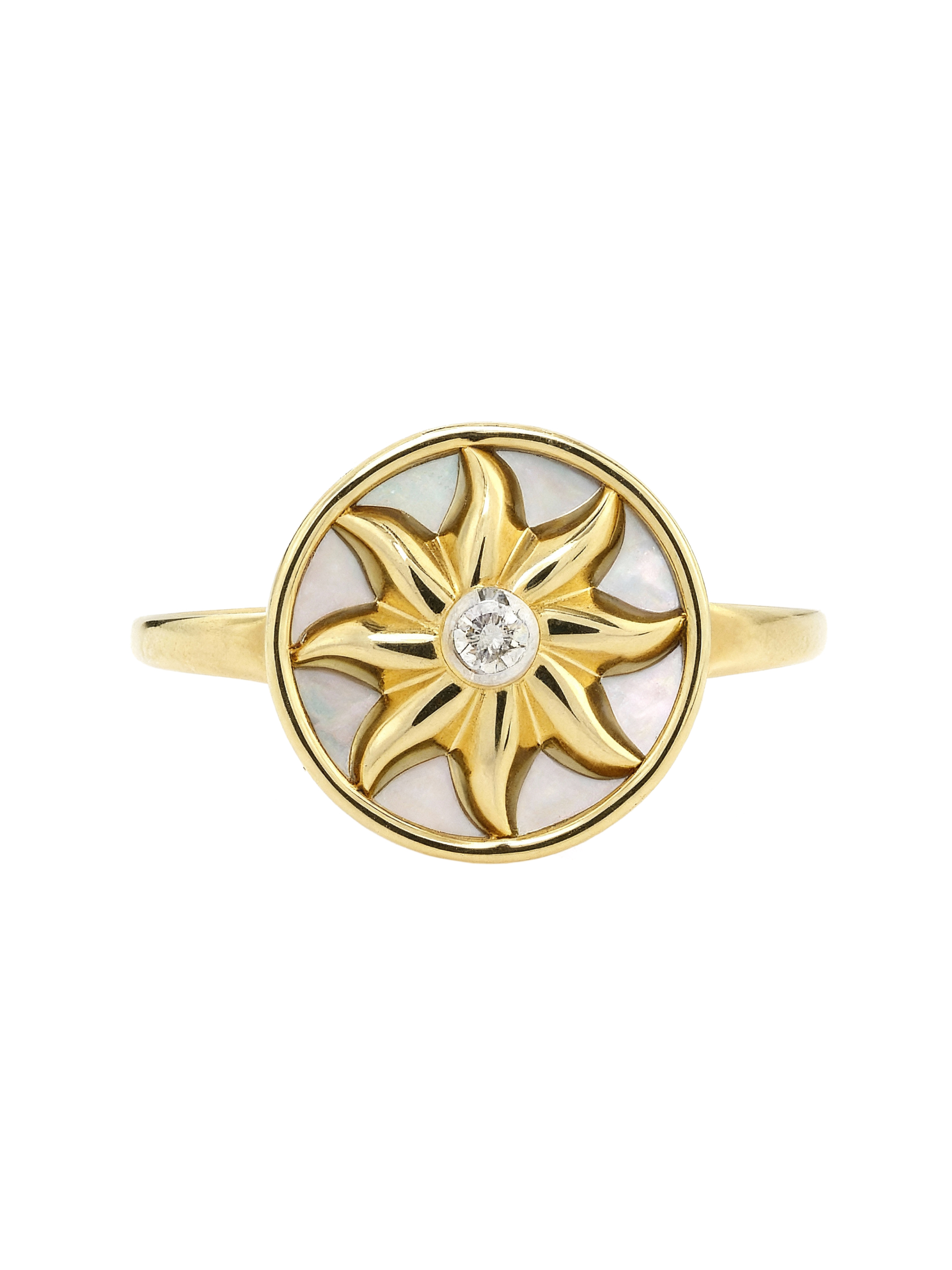 Кольцо из лимонного золота c бриллиантами и перламутром