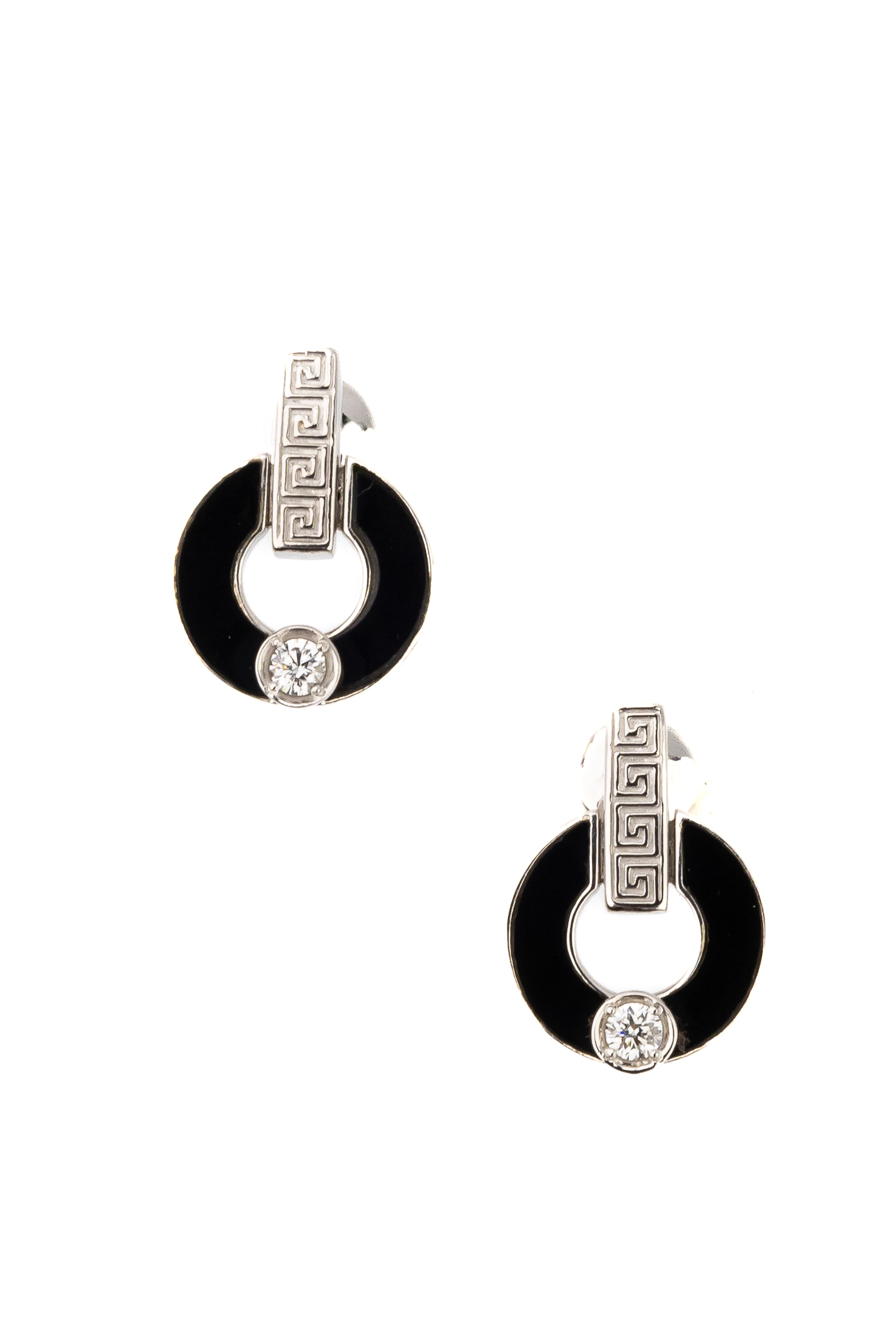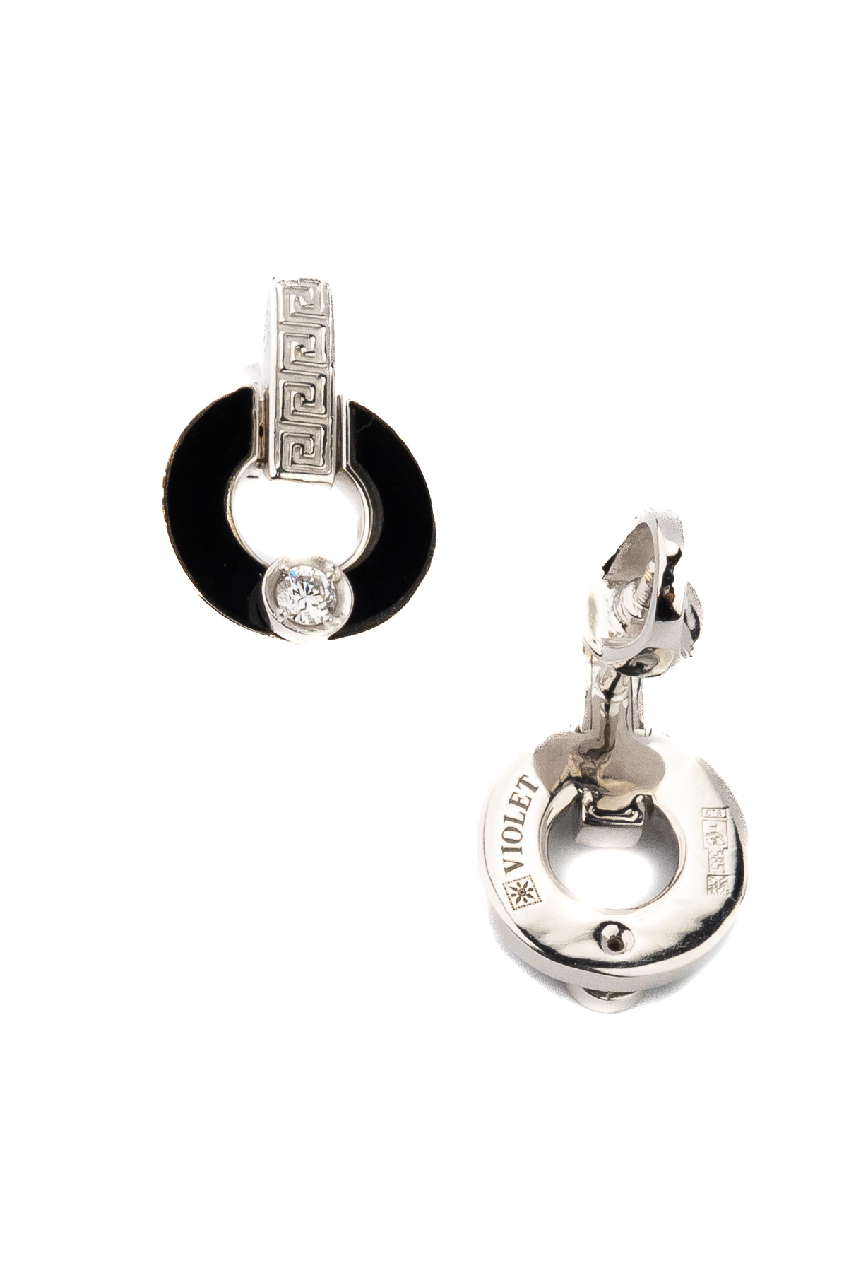 Серьги из белого золота c бриллиантами и ониксом