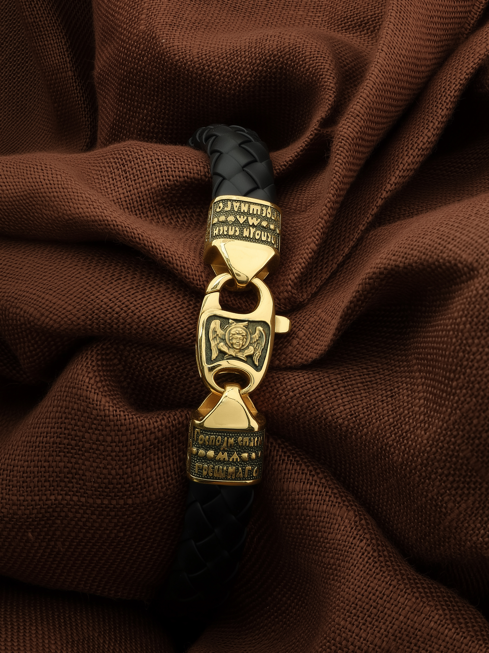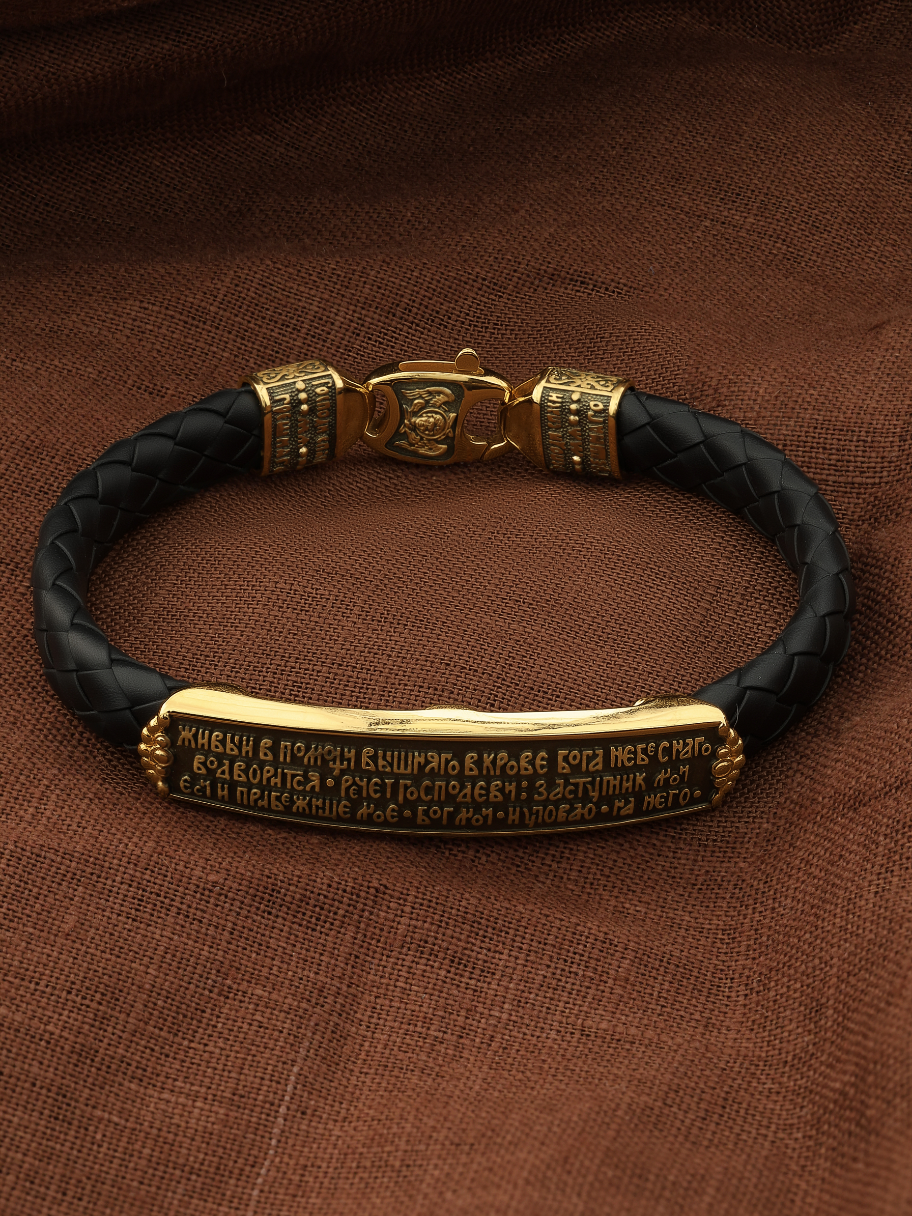 На основном звене браслета написана молитва: «Живый в помощи Вышняго, в крове Бога Небеснаго водворится. Речет Господеви: Заступник мой еси и Прибежище мое, Бог мой, и уповаю на Него.»