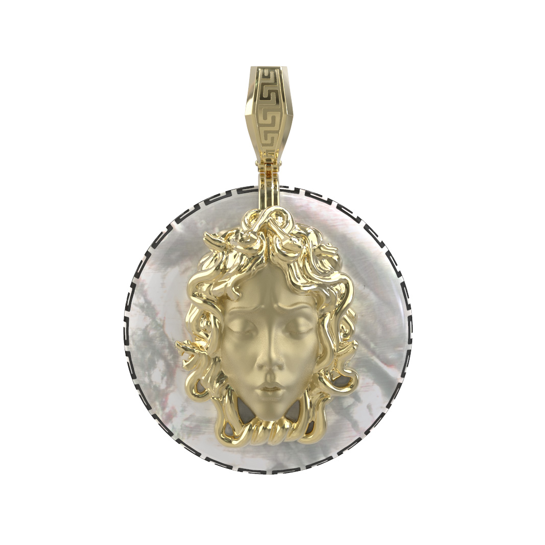 Подвеска из лимонного золота c эмаль и перламутром