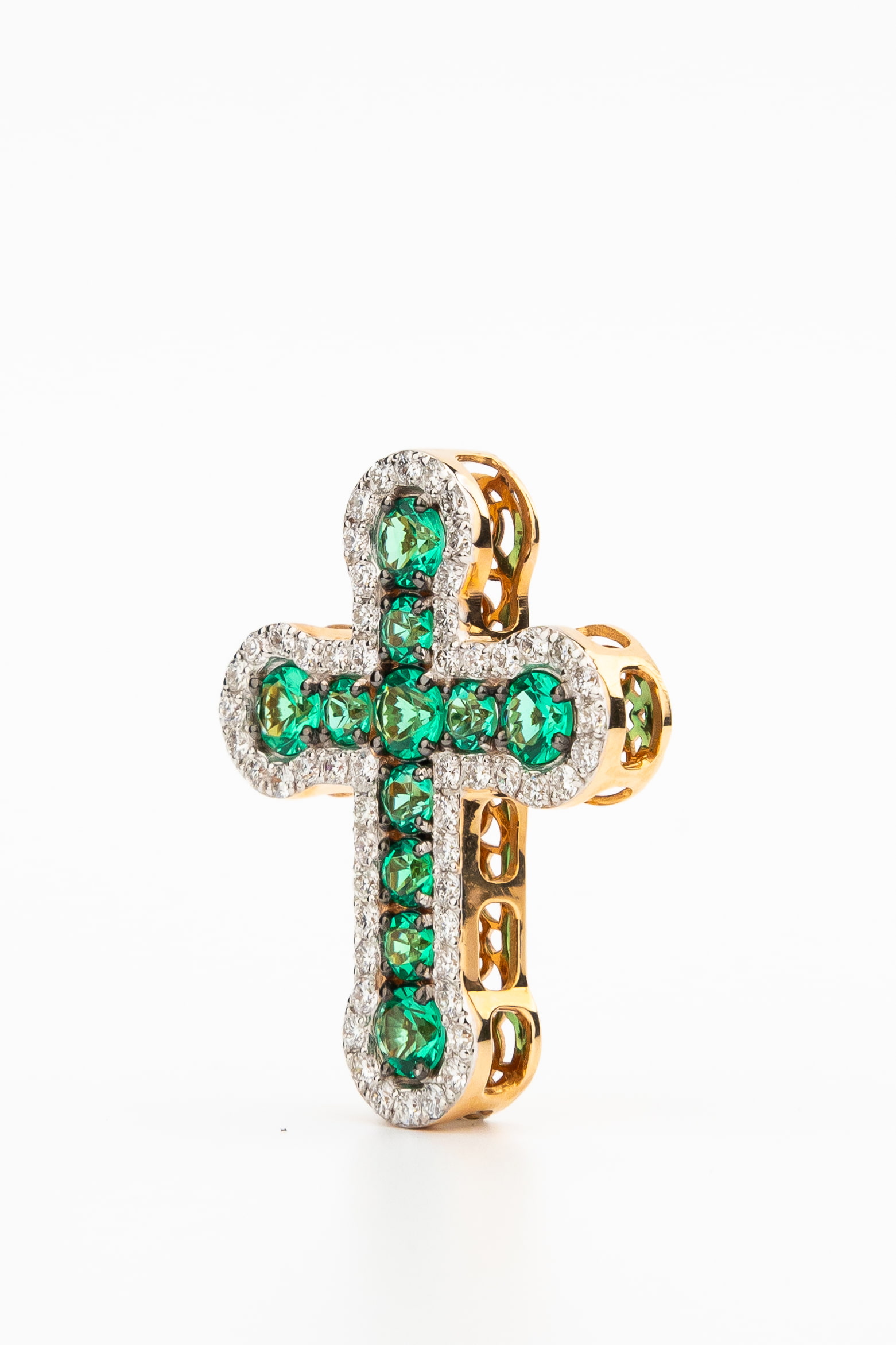 Крест из золота c бриллиантами и изумрудом