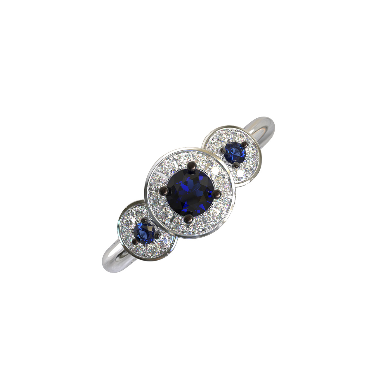 Кольцо из белого золота c бриллиантами и сапфиром