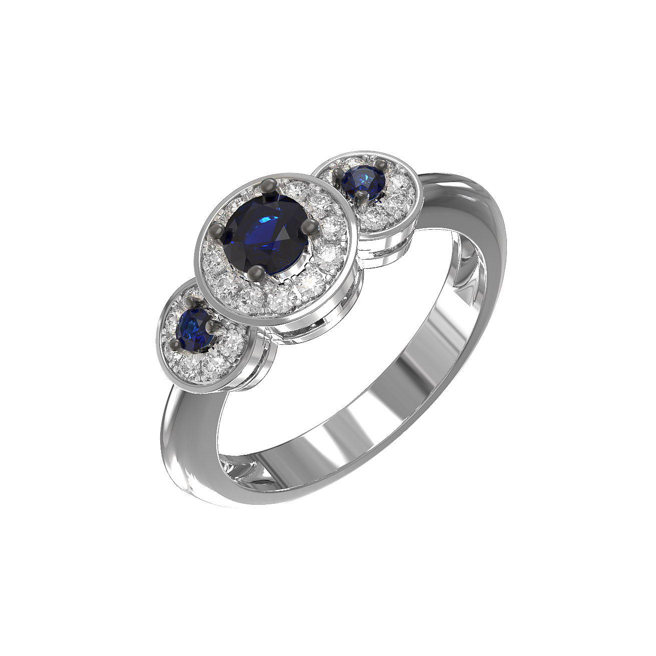 Кольцо из белого золота c бриллиантами и сапфиром