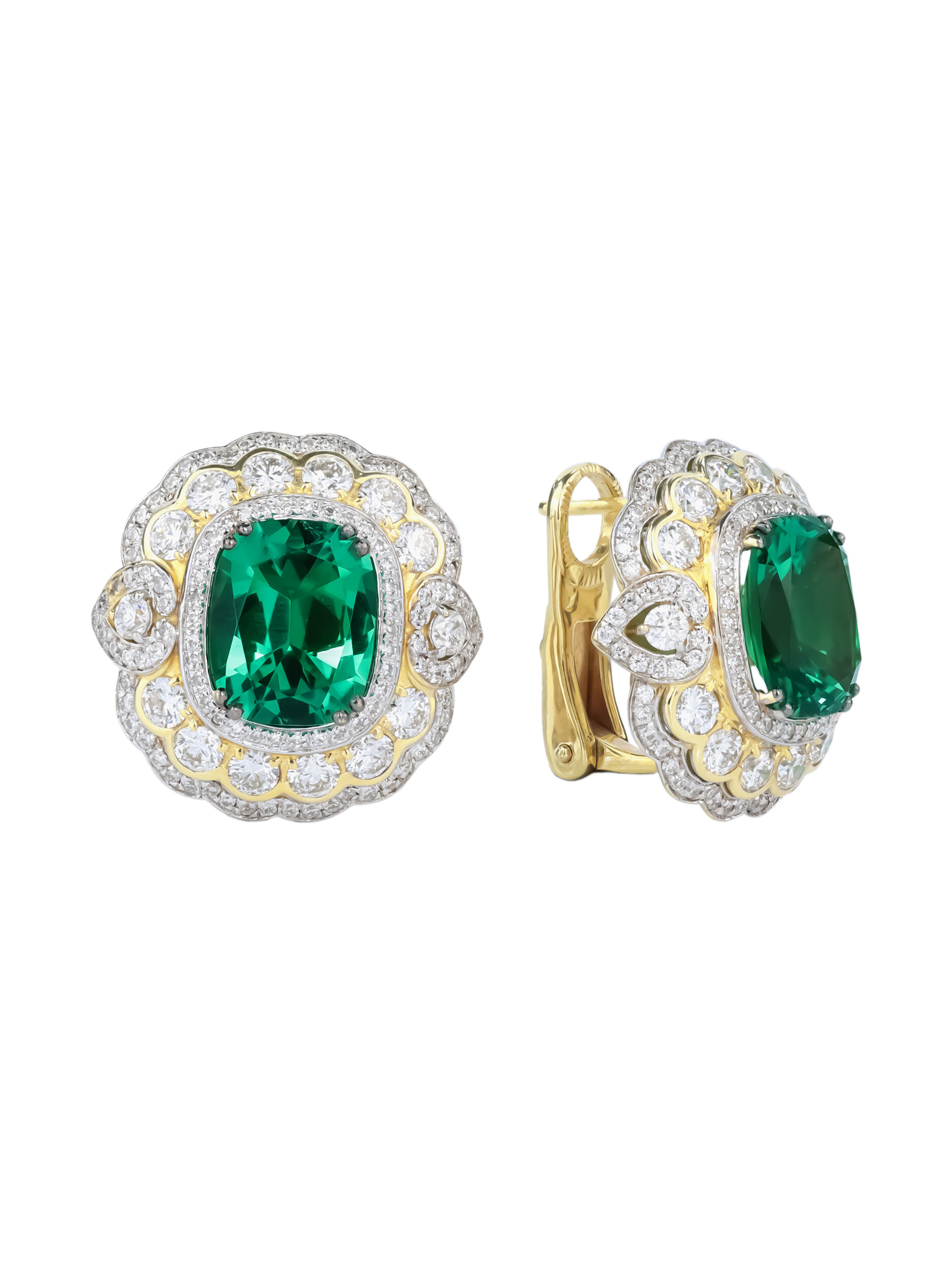 Серьги из лимонного золота c бриллиантами и изумрудом