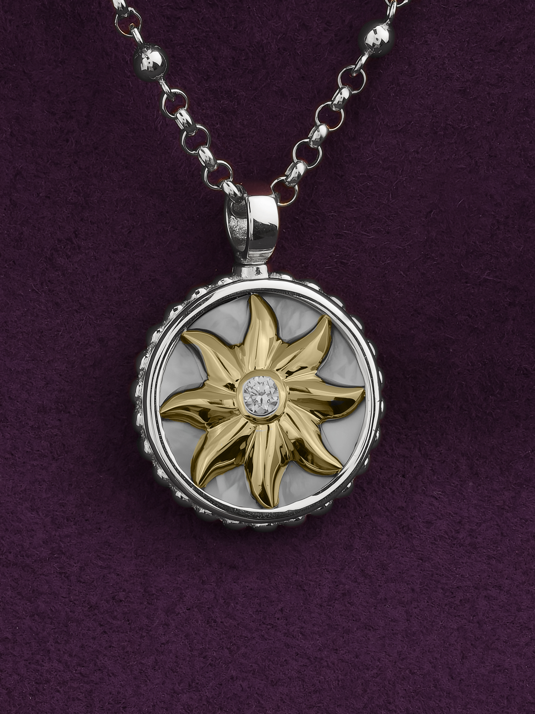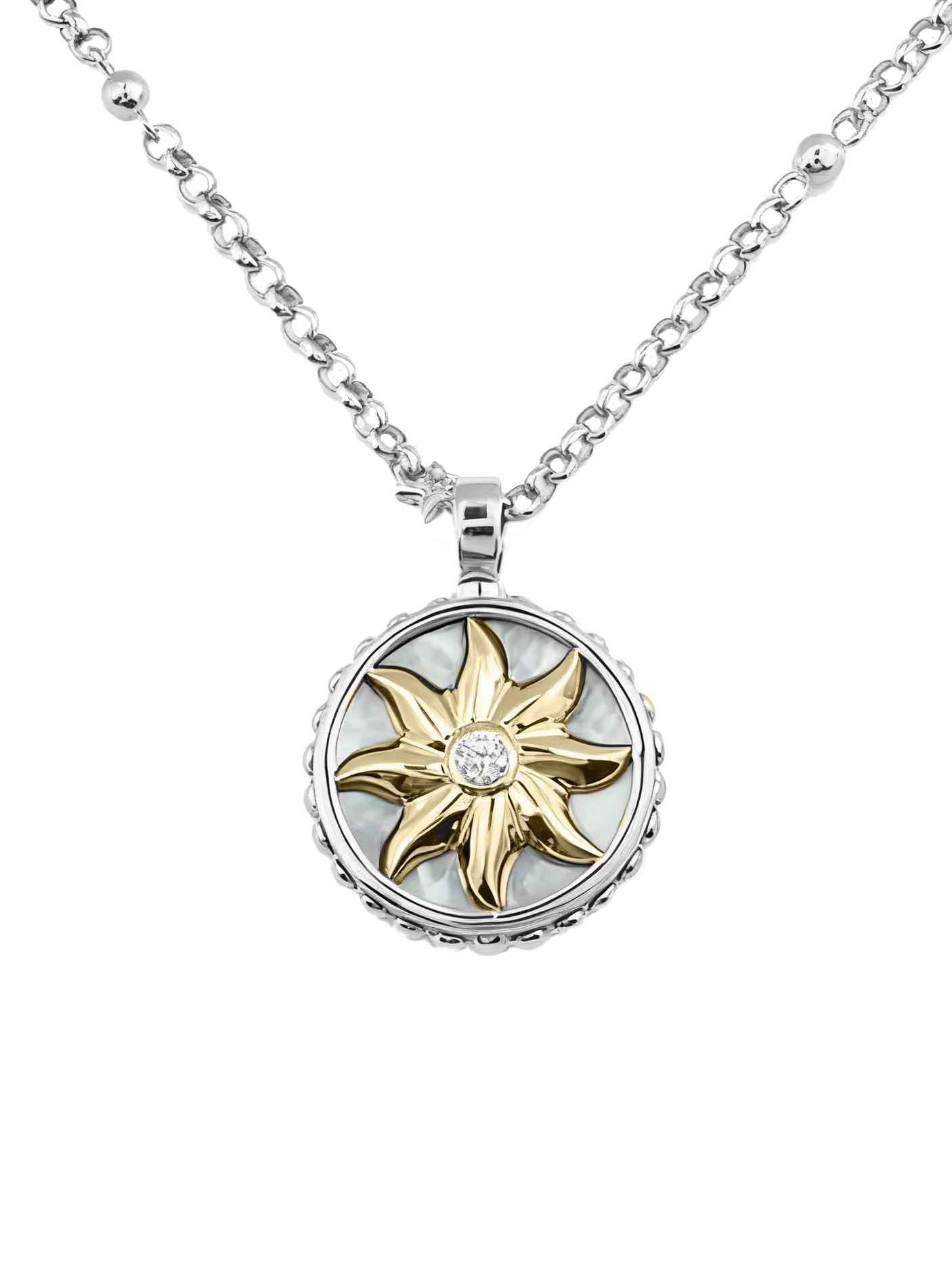 Колье из белого золота c бриллиантами, ониксом и перламутром