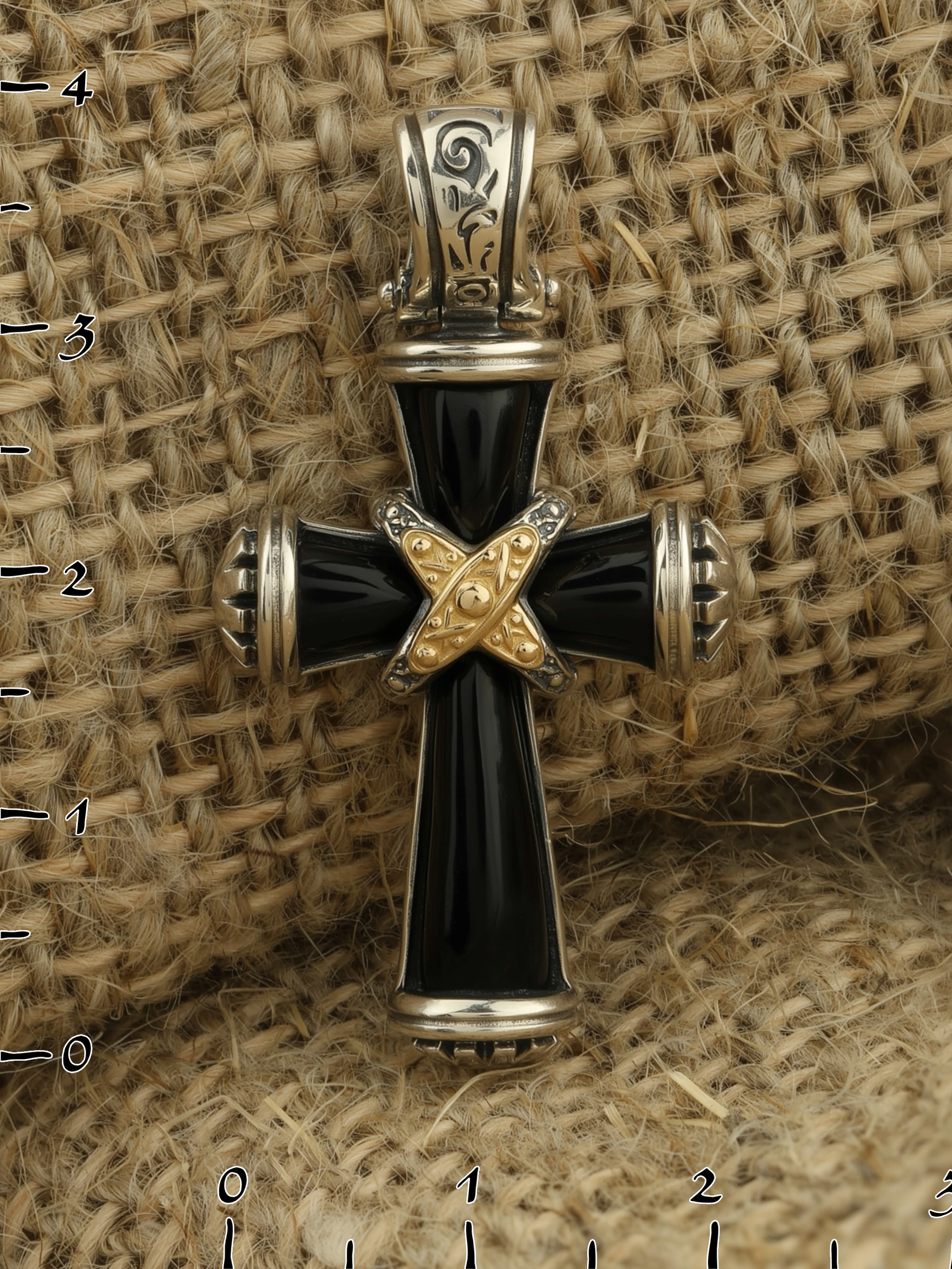 Крест из серебра и золота c ониксом и рубином